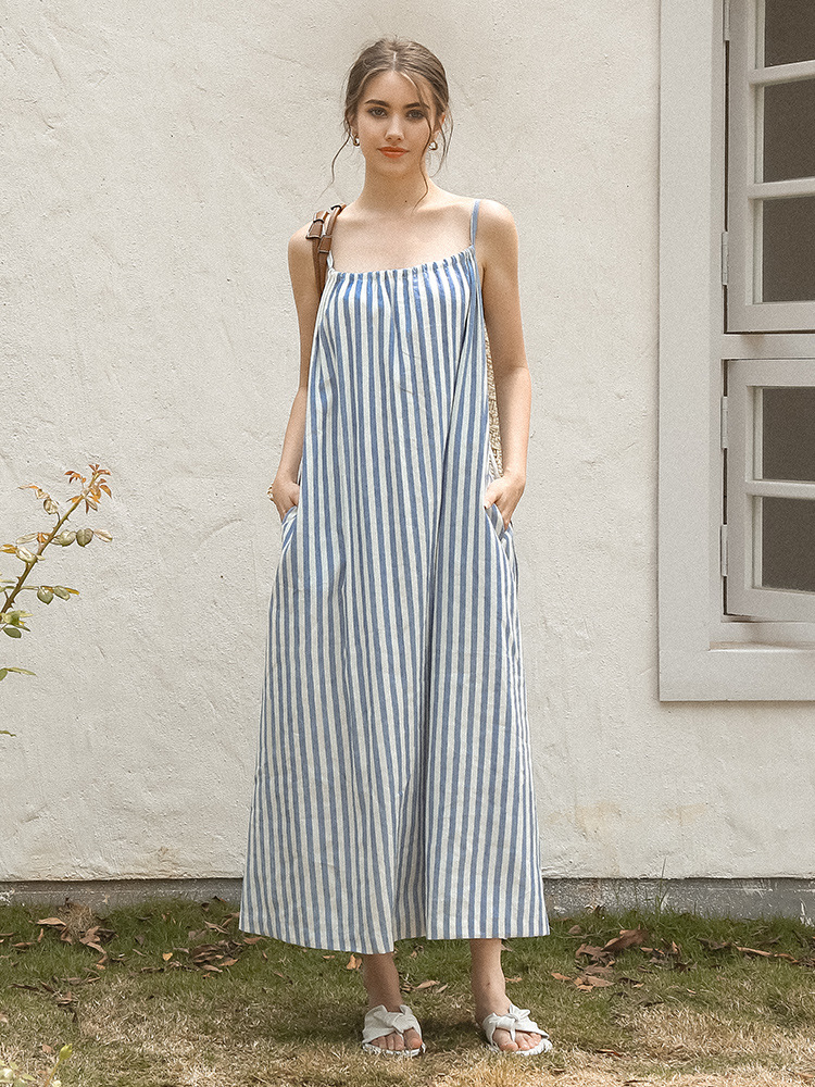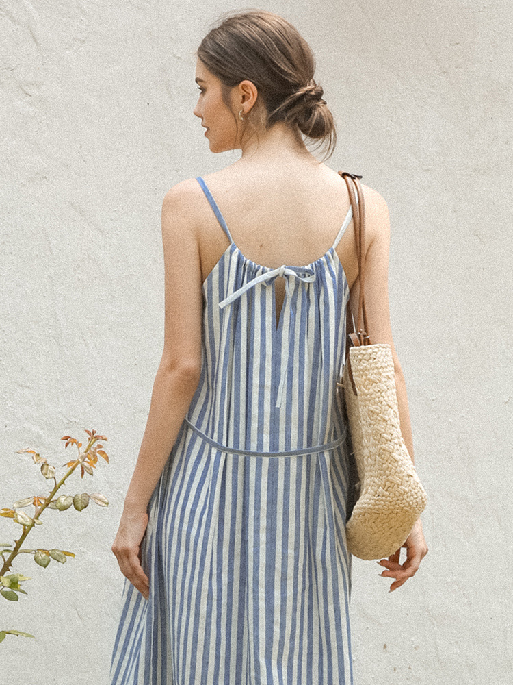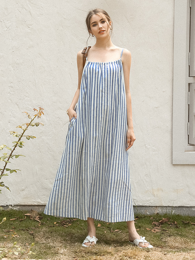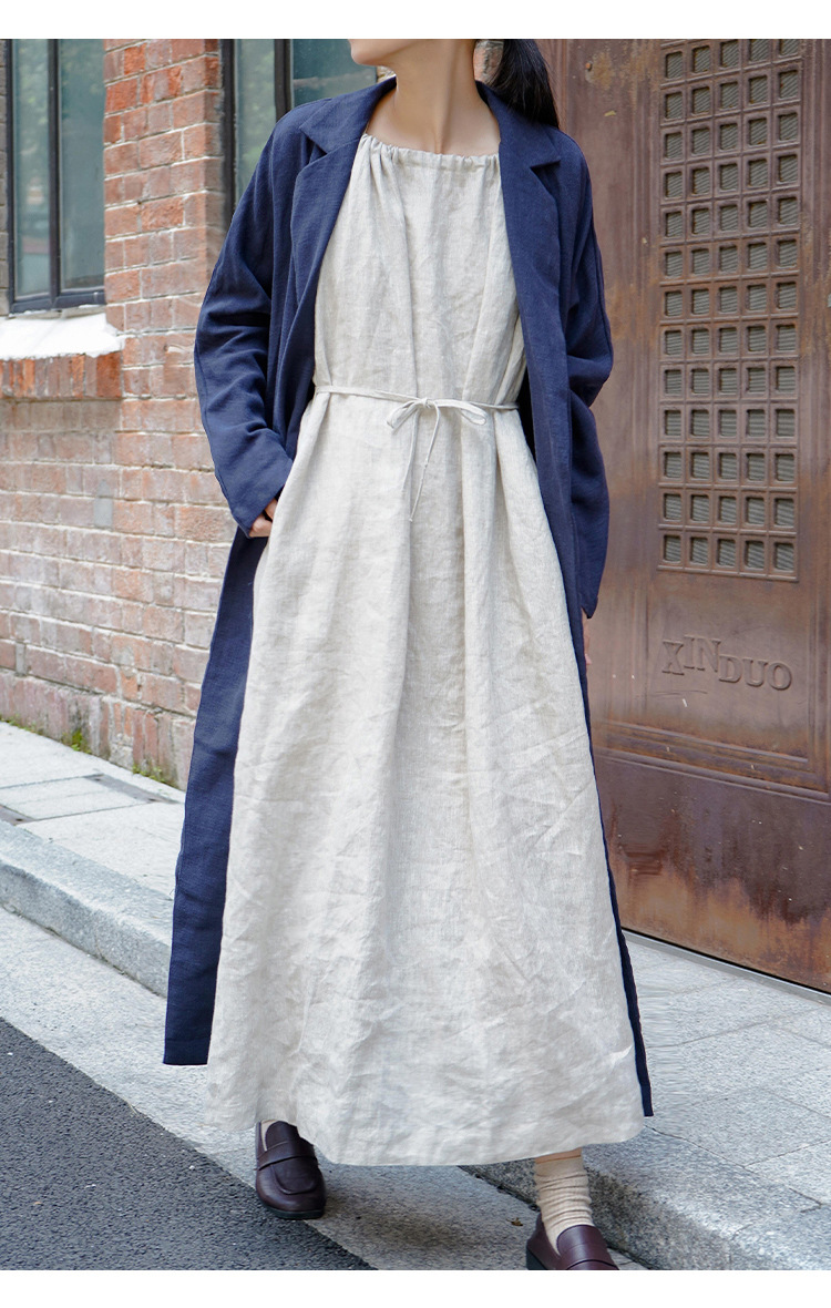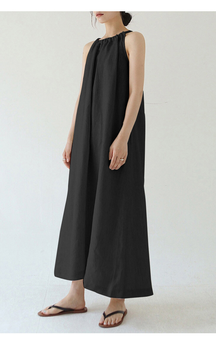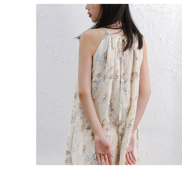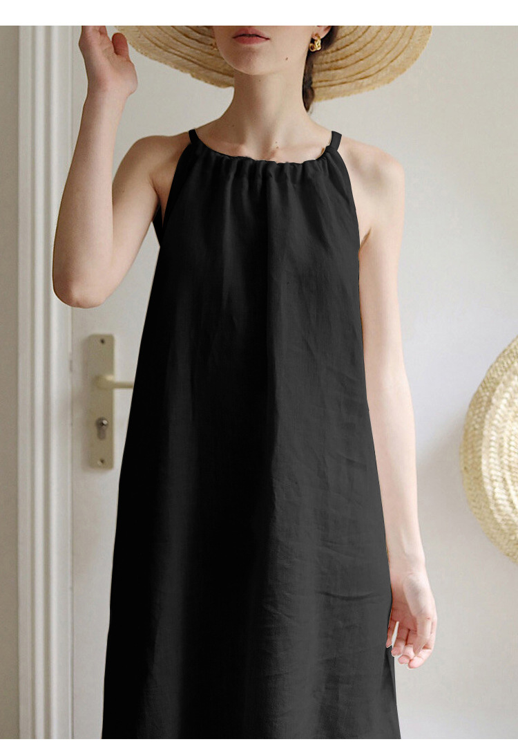 Cotton Linen Dress off Shoulder Halter French Loose Niche Mid Length Pure Linen Cotton Camisole Dress