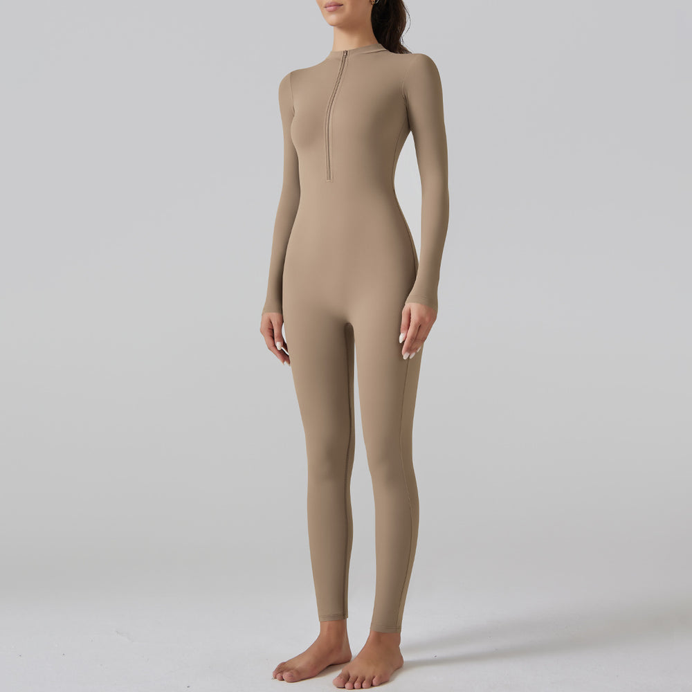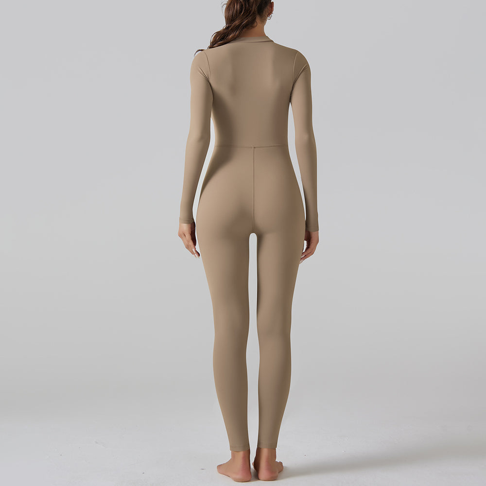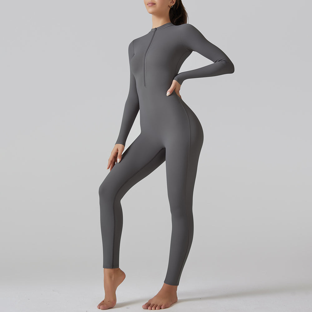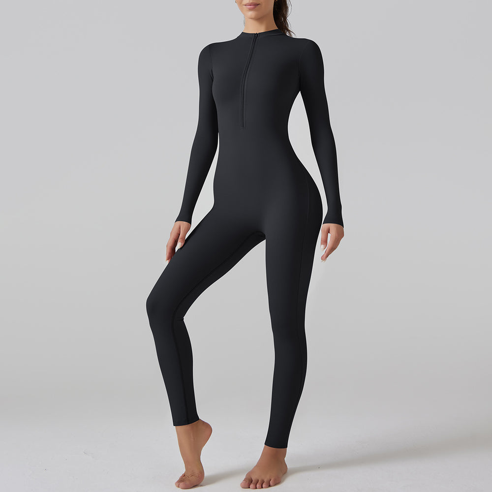 Internet Open Collar Long Sleeve Zipper One Piece Dance Fitness Sports Jumpsuit Sexy Tight Yoga Clothes for Women