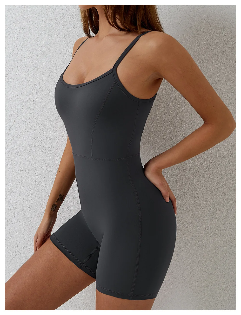 Nude Yoga Suit Women's Tracksuit One Piece Sports Suit Short Gym Clothes Push Up Workout Set Fitness Hip Lift Yoga Bodysuit