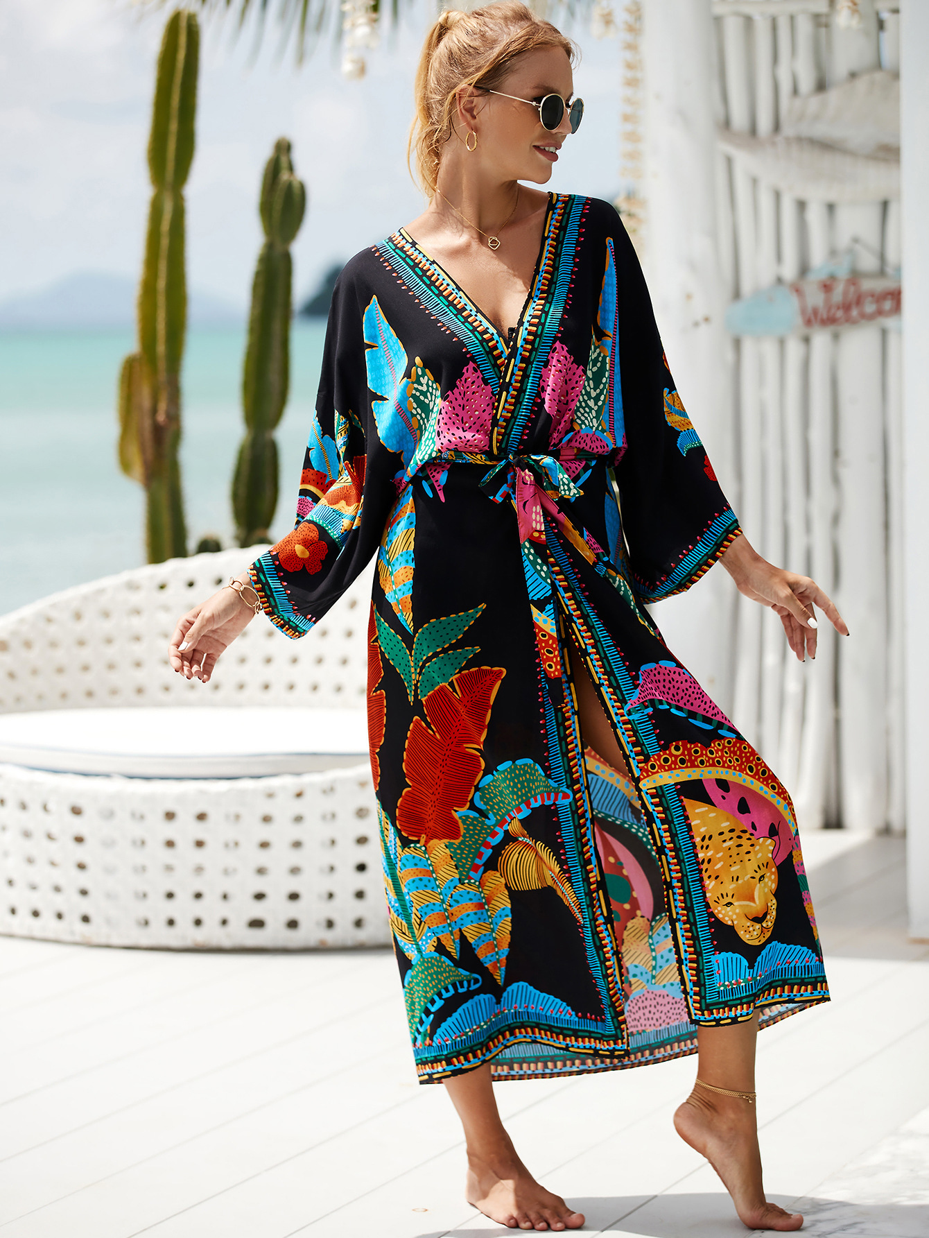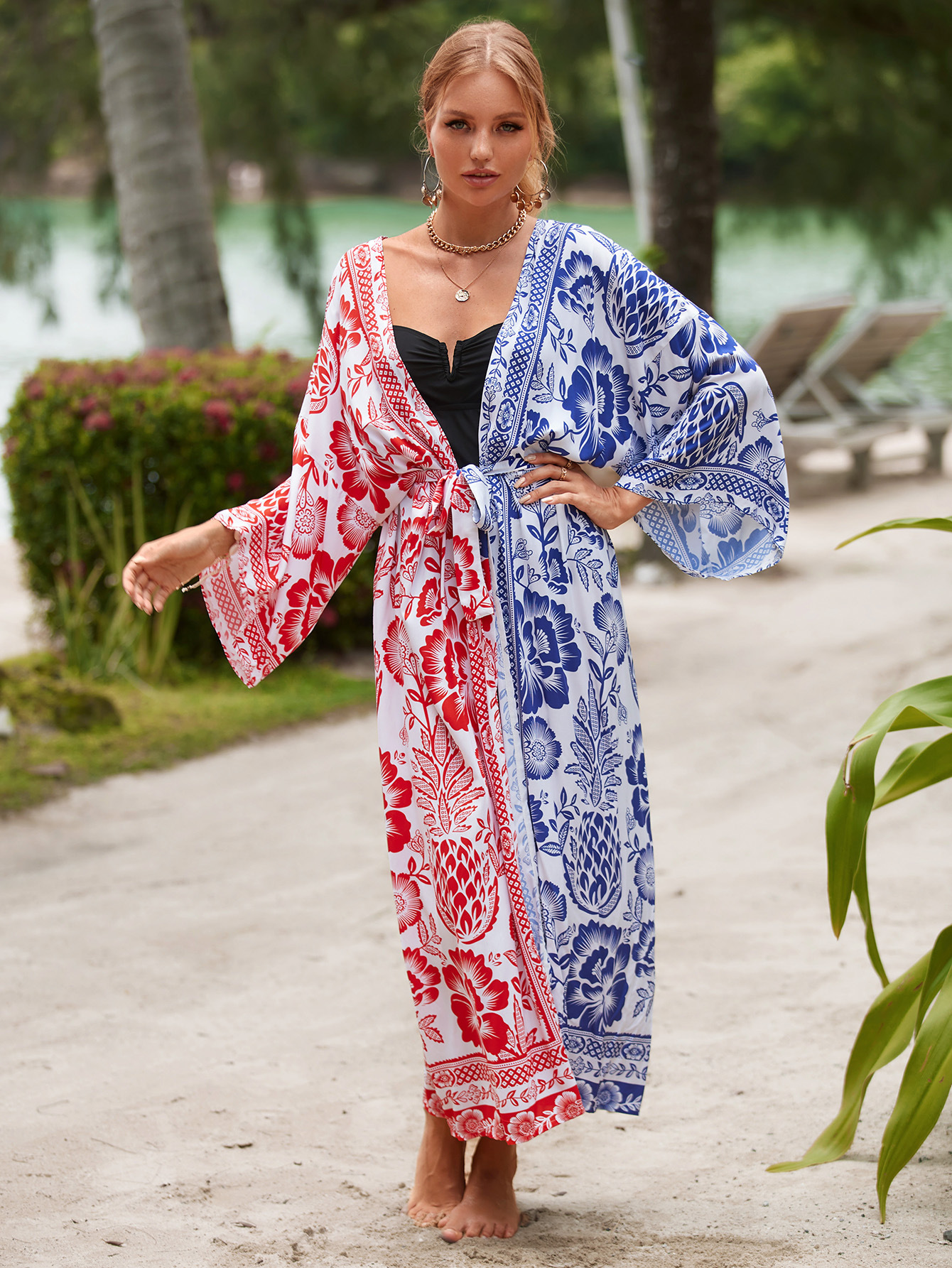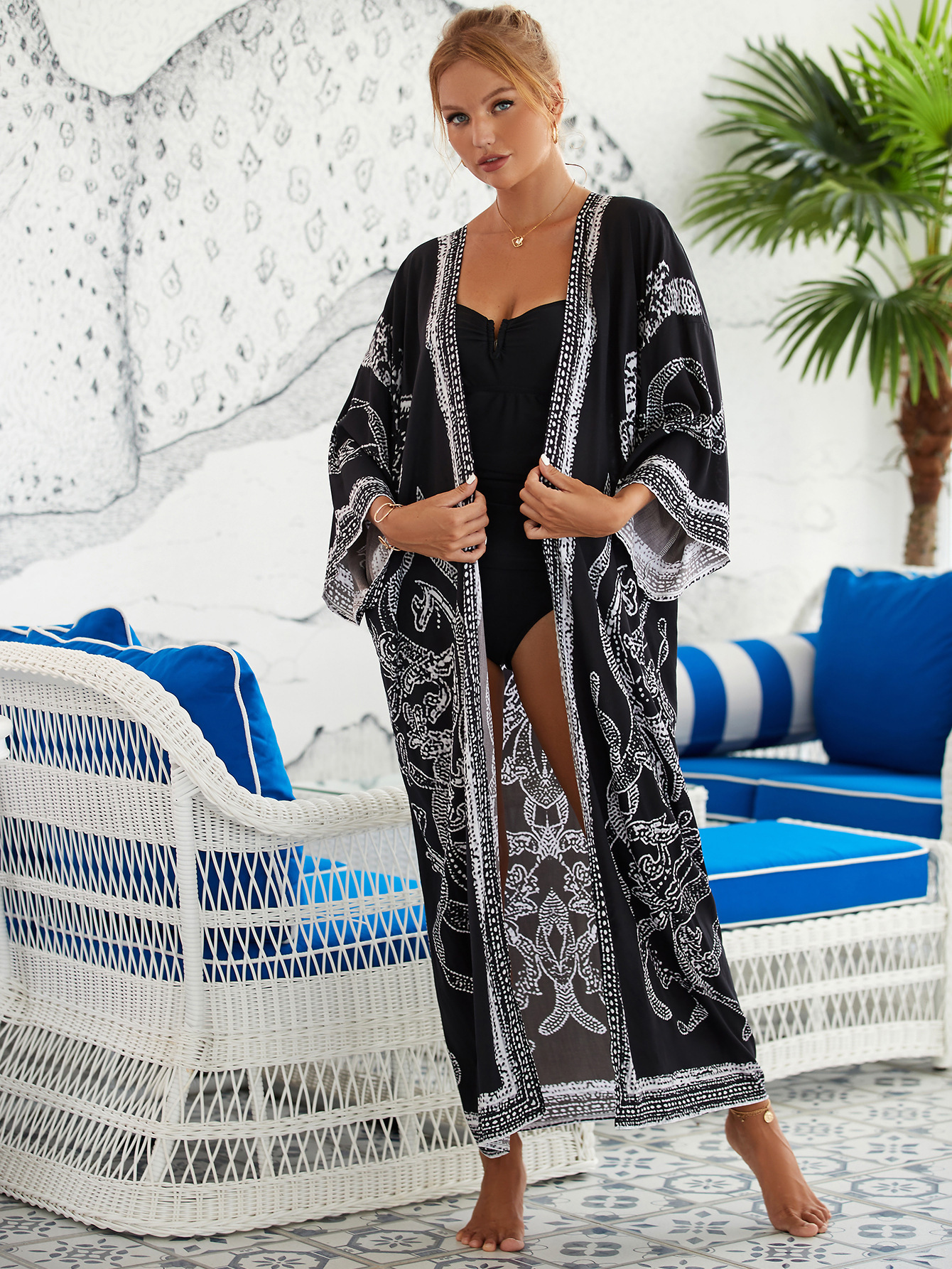 Printed Beach Jacket Sexy Sun Protection Cardigan Holiday Bikini Cover up Blouse Women