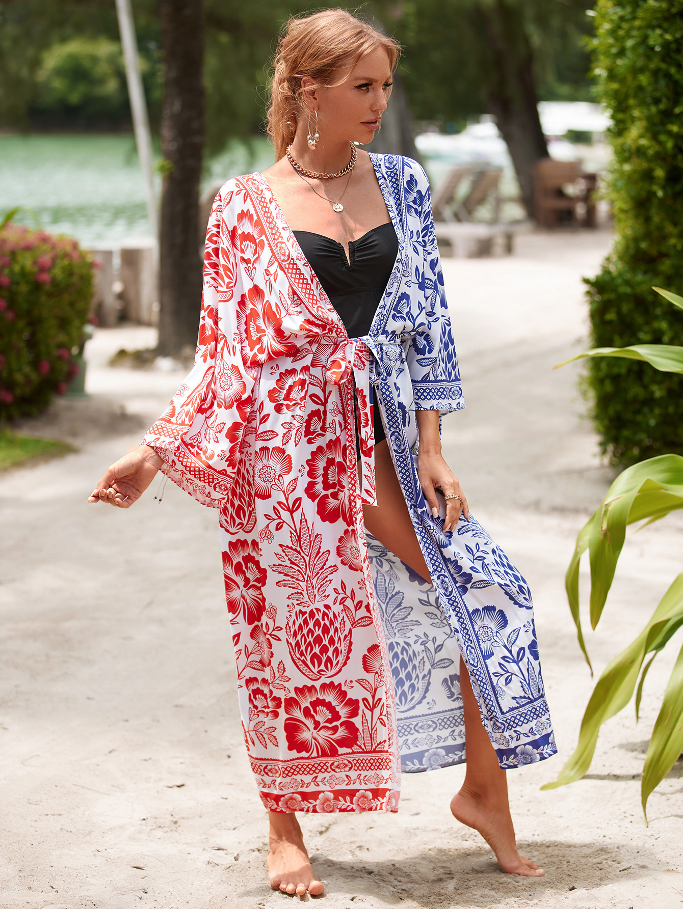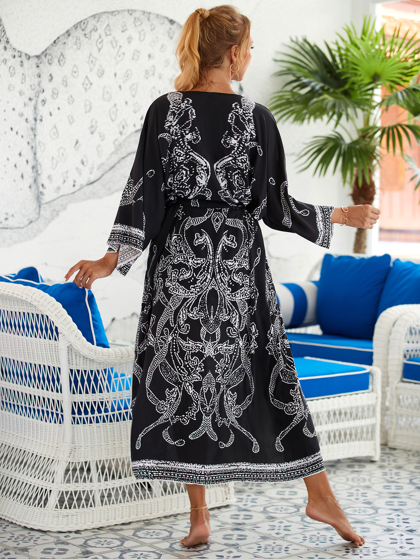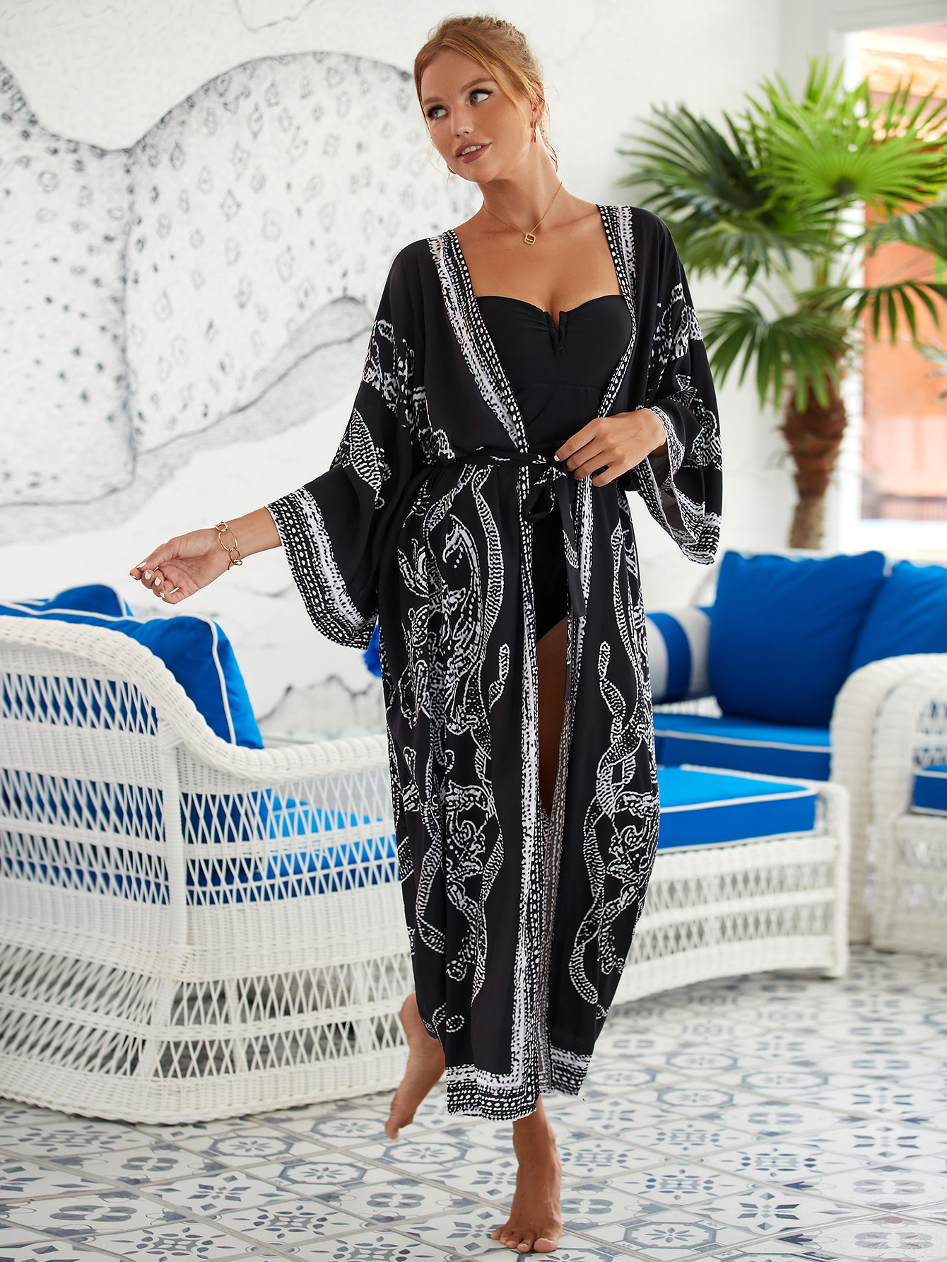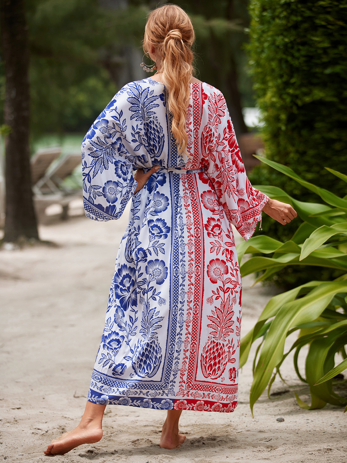 Printed Beach Jacket Sexy Sun Protection Cardigan Holiday Bikini Cover up Blouse Women