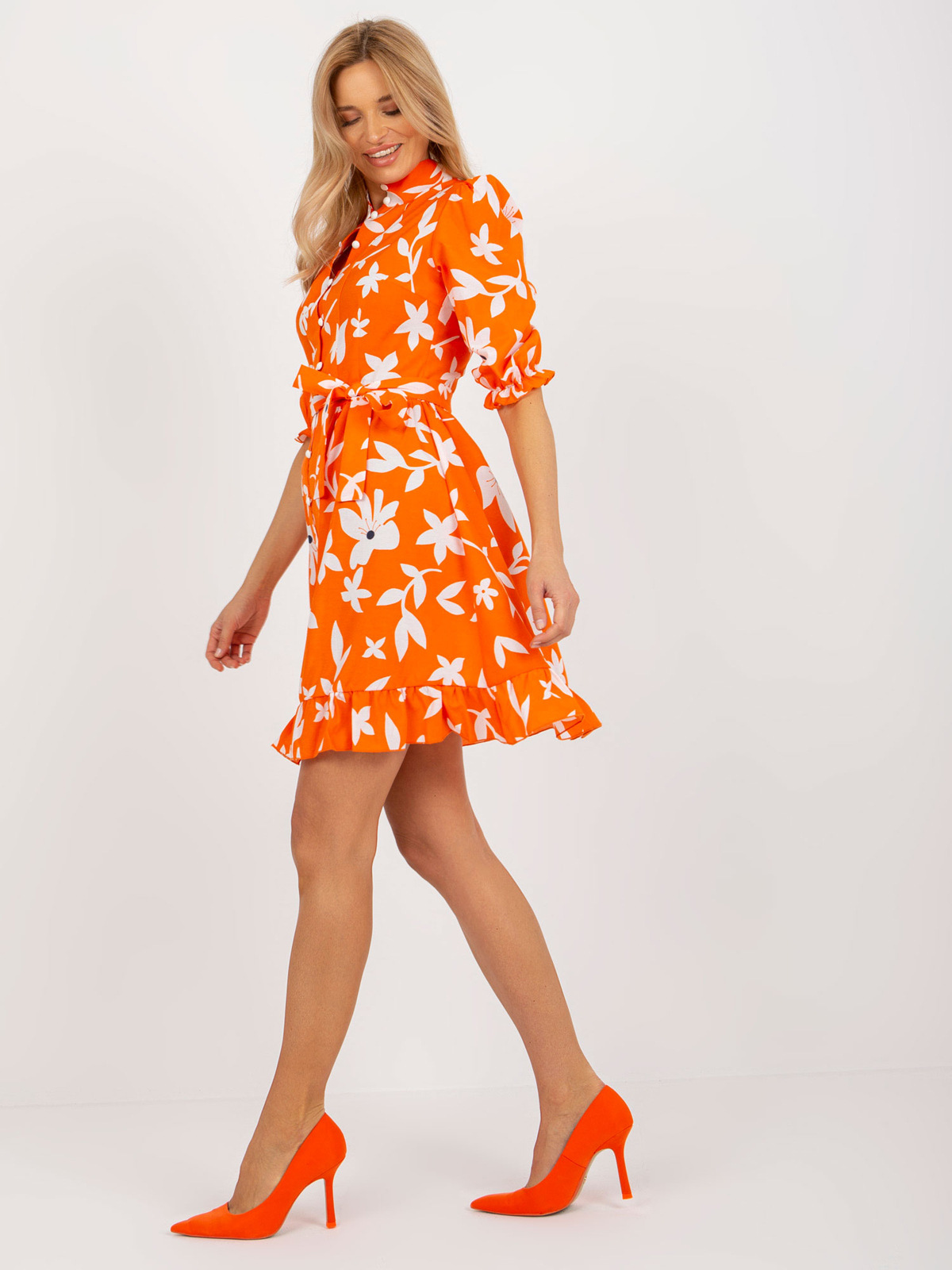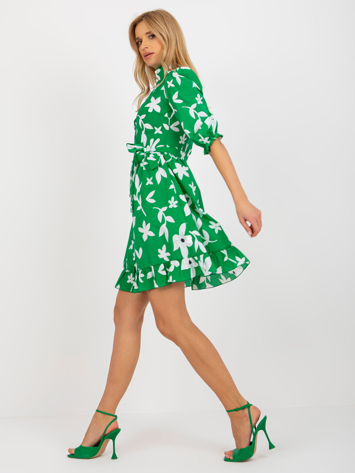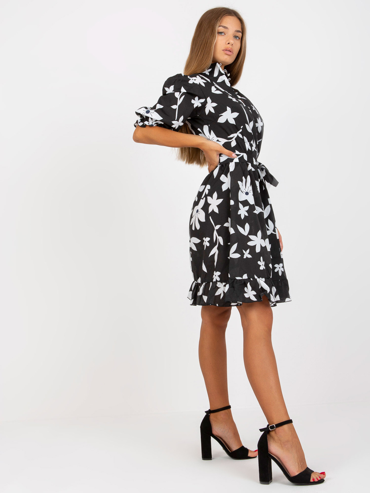 Summer Belt Tight Waist Shirt Bubble Sleeve Printed Dress