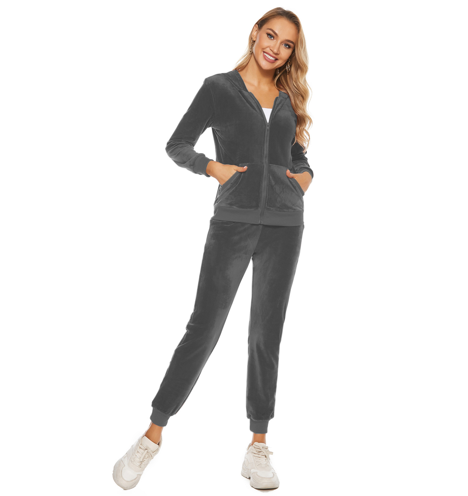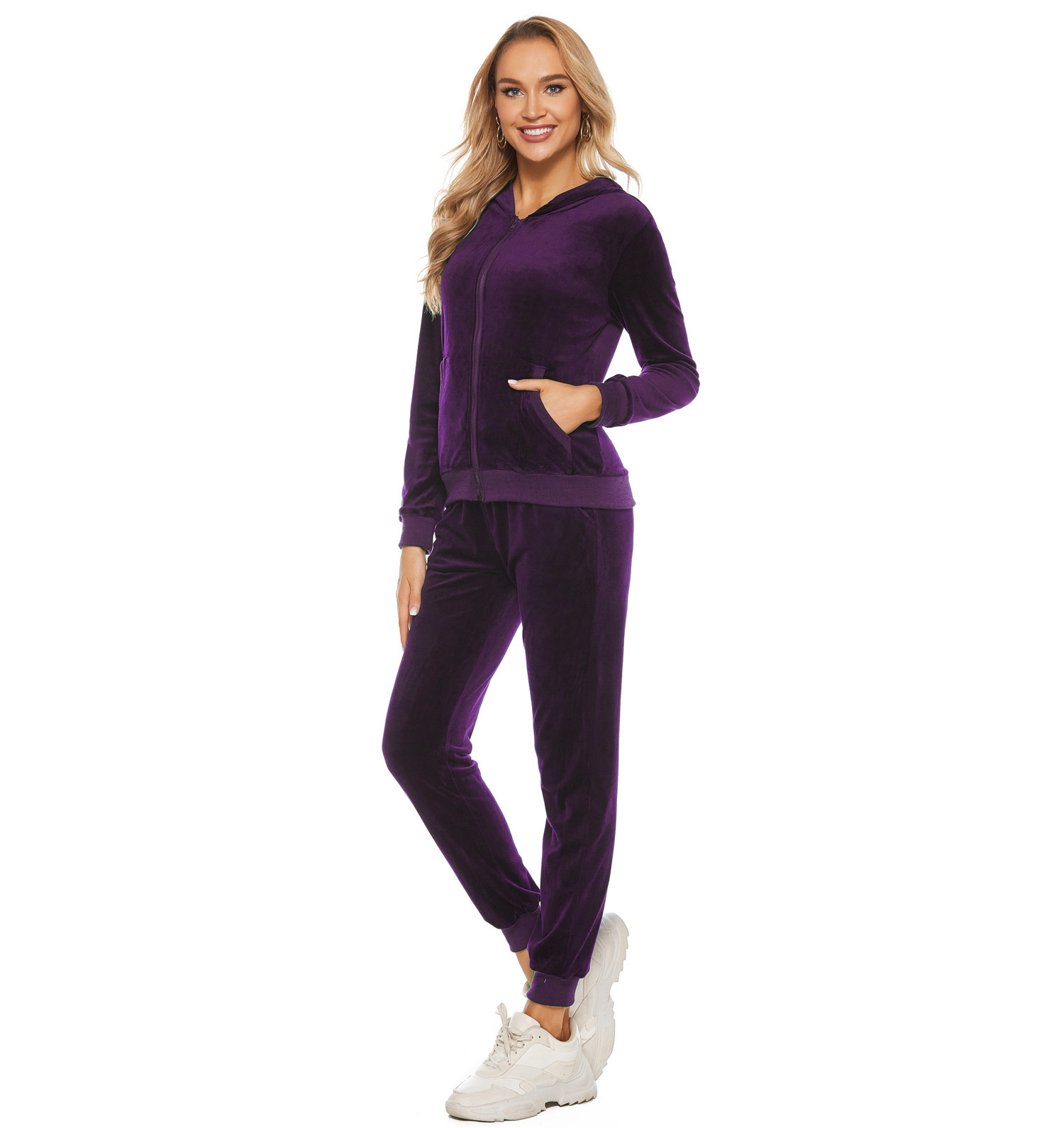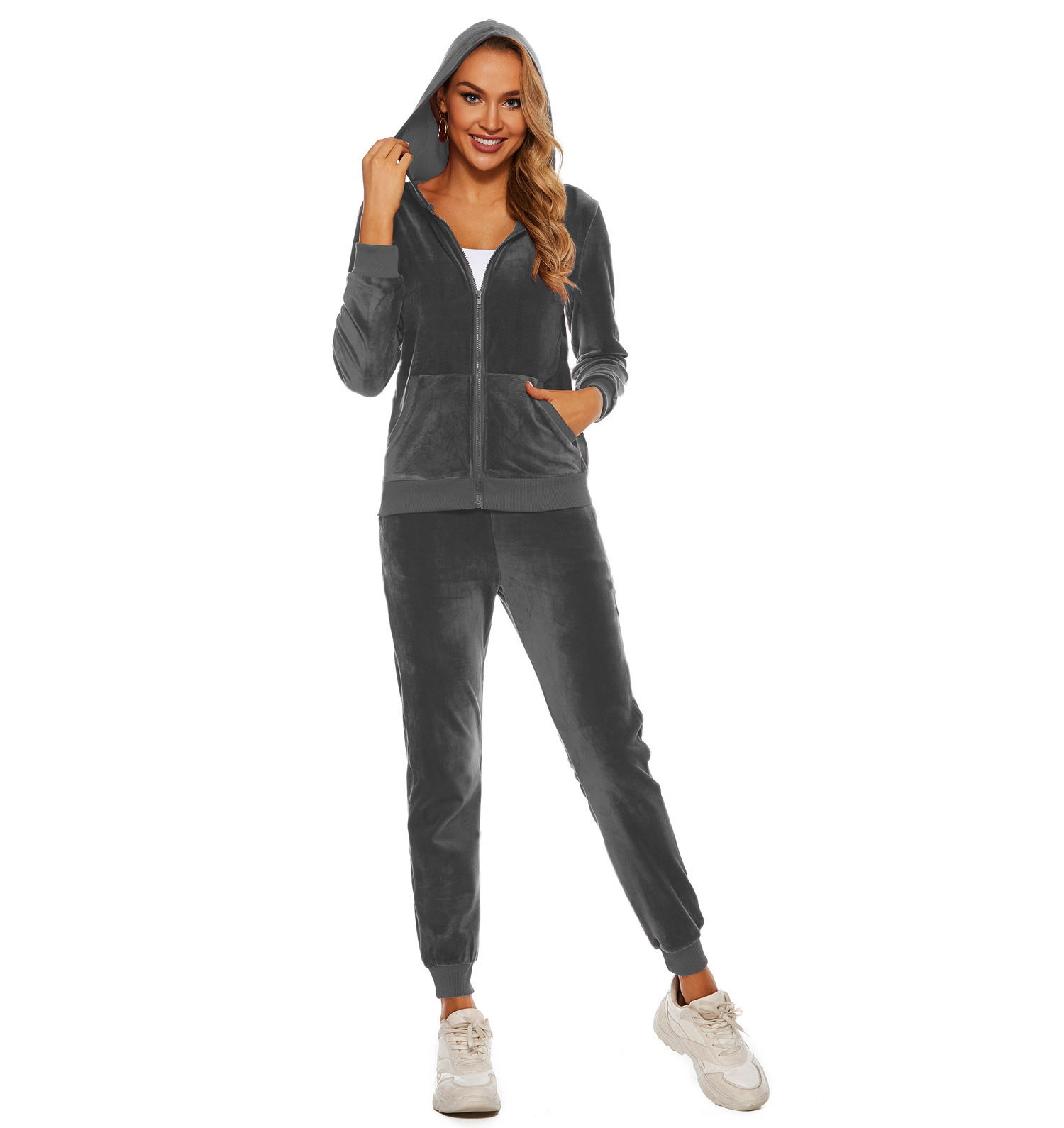 Velvet Hooded Sports Suit Autumn Winter Casual Sweatshirt Two Piece Suit