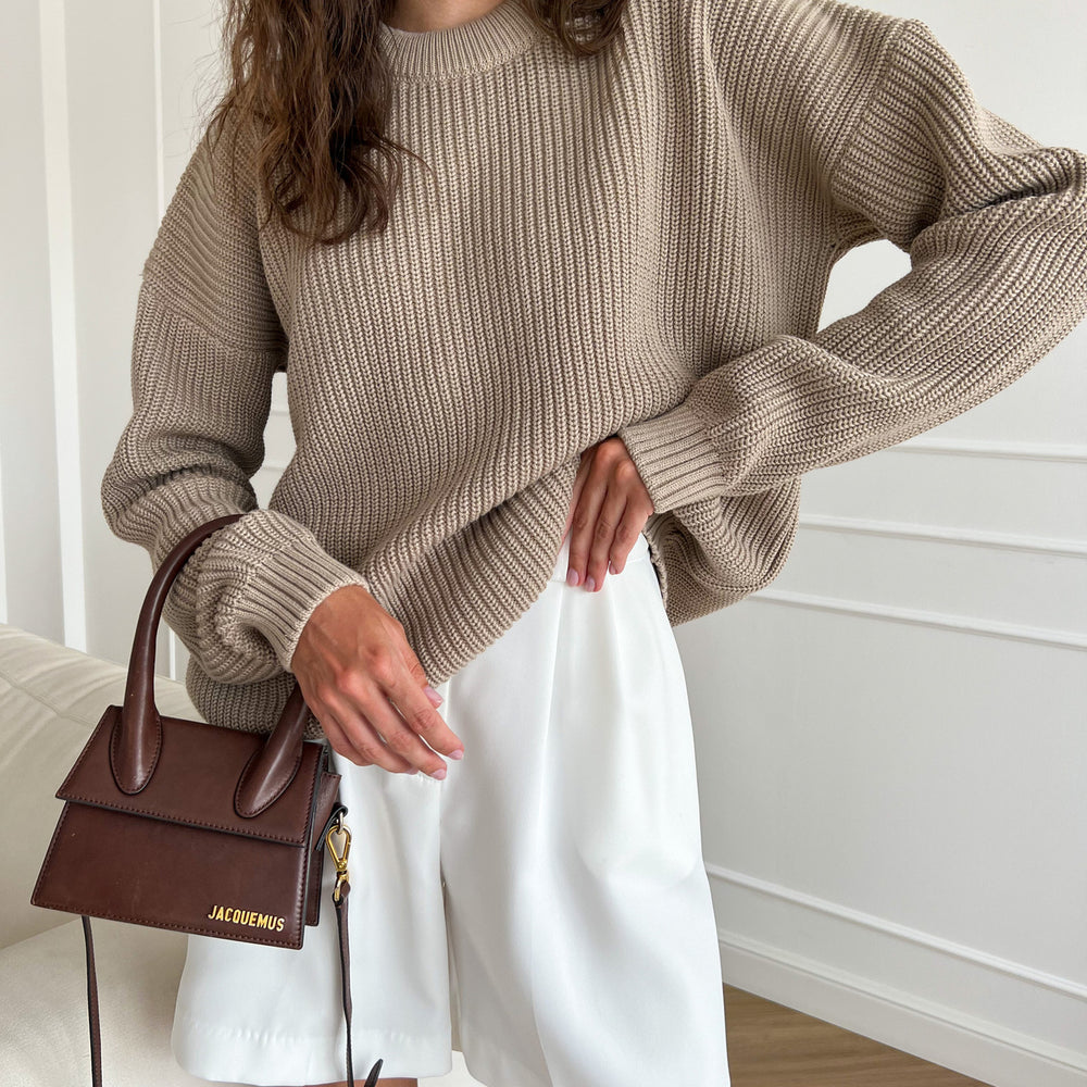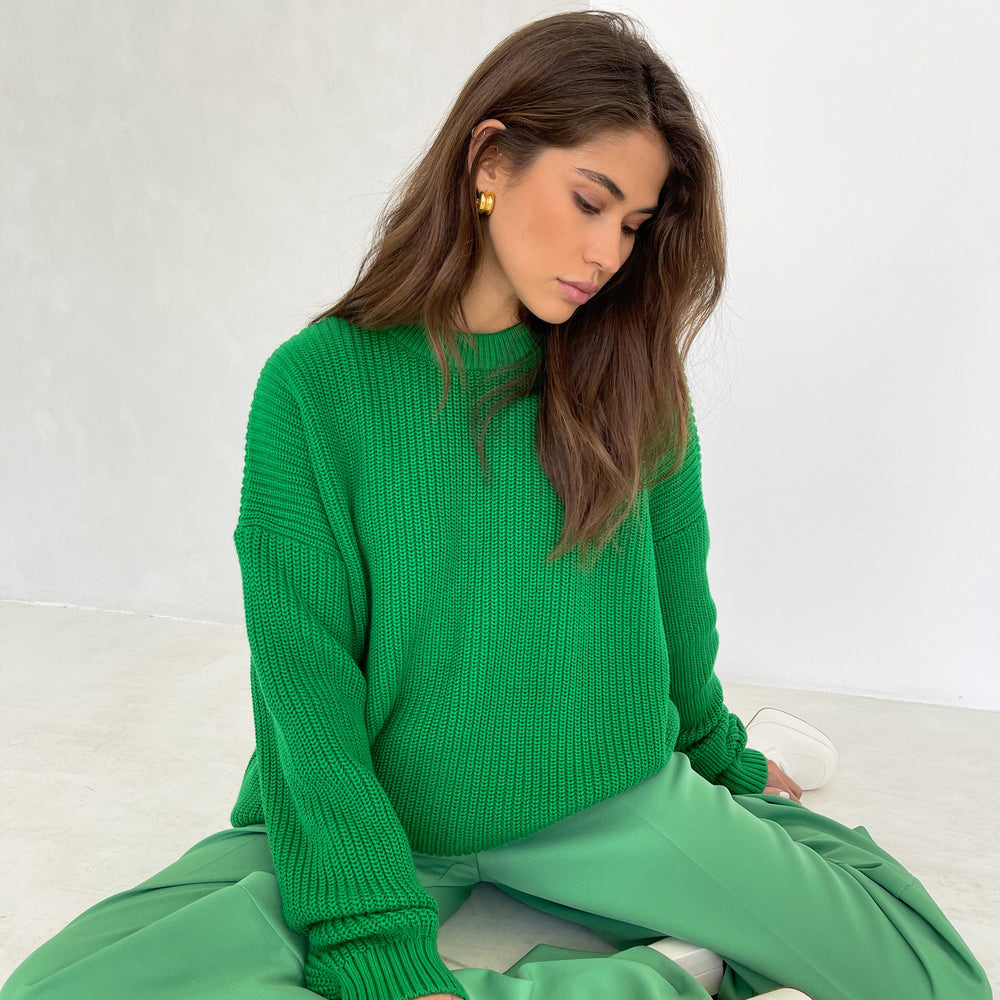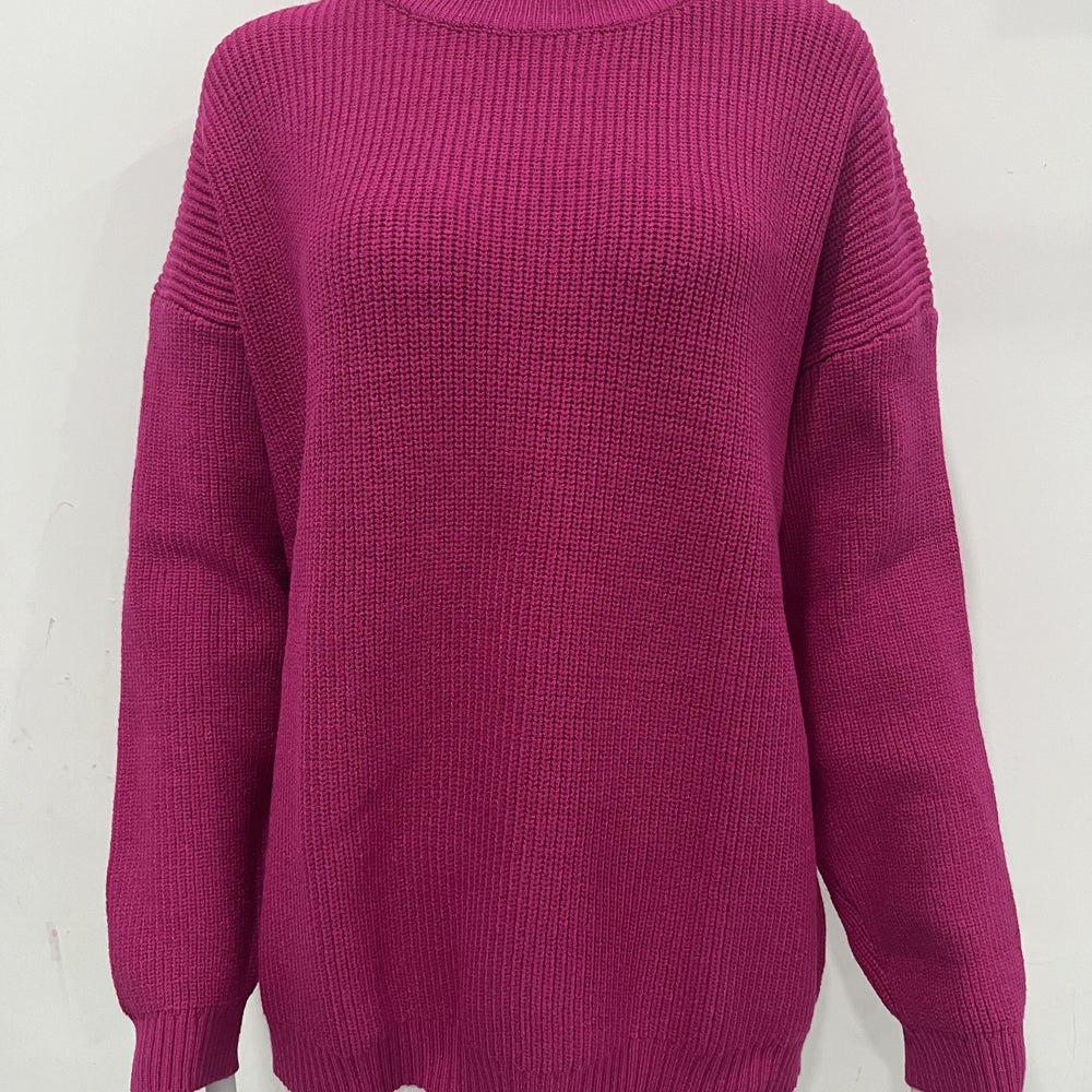 Women Knitwear Crew Neck Loose Solid Color Autumn Winter Women Sweater
