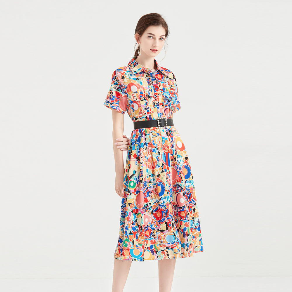 Women Spring Summer and Autumn New Lapel Shirt Dress Women Single breasted Color Letter Printed Button Mid length Dress