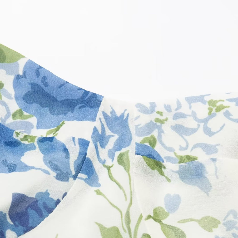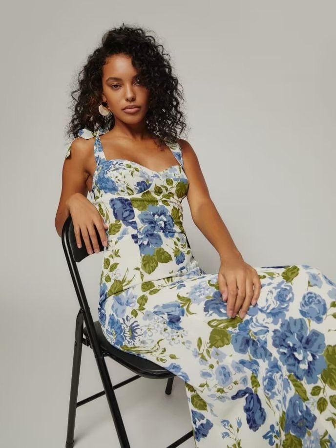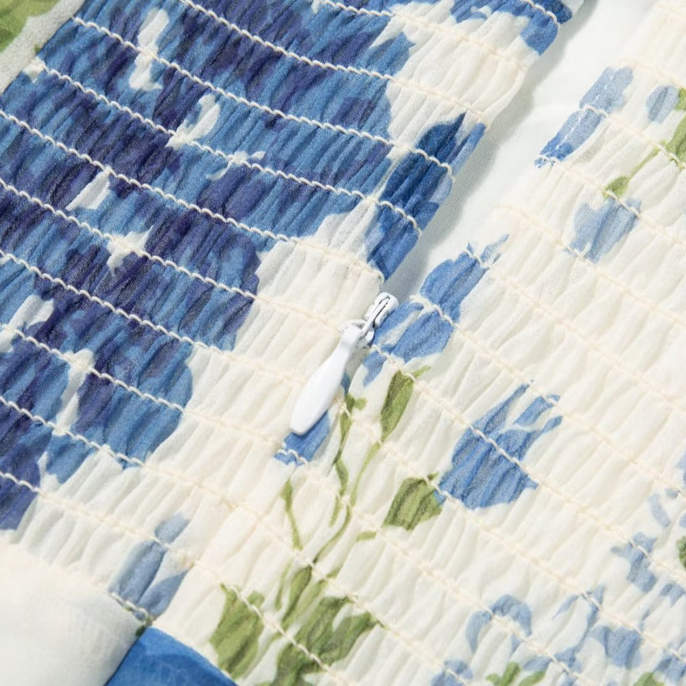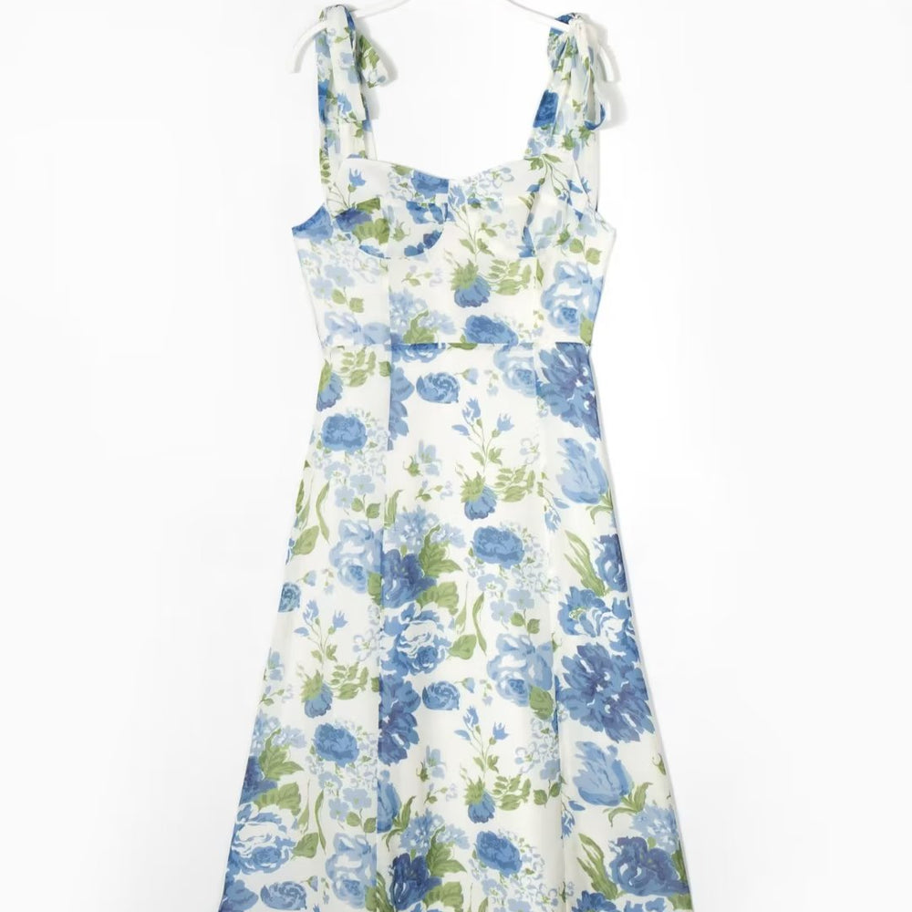 Spring Summer Women Clothing Maxi Dress High Waist Strap Type Drawstring Printed Dress