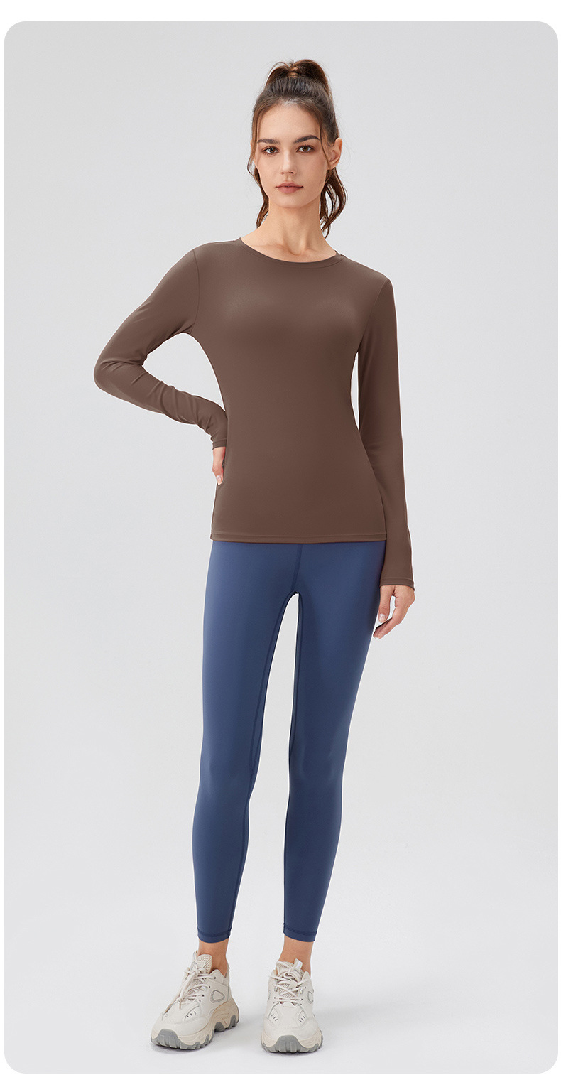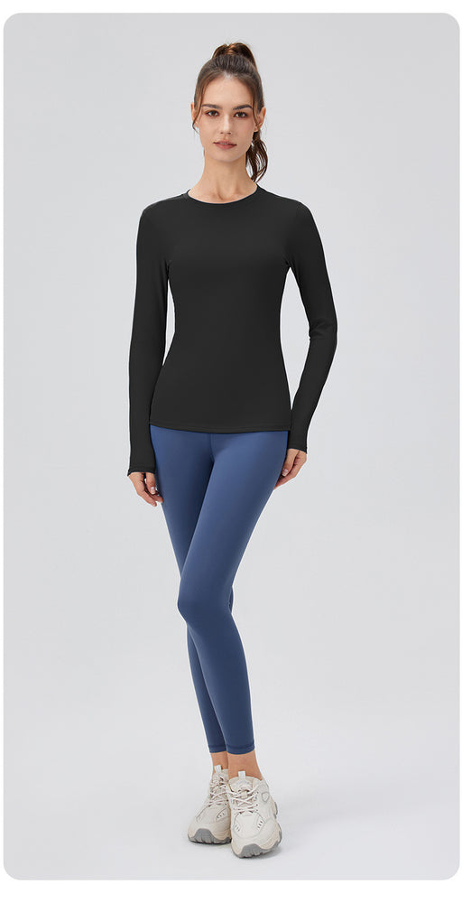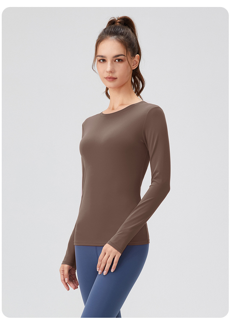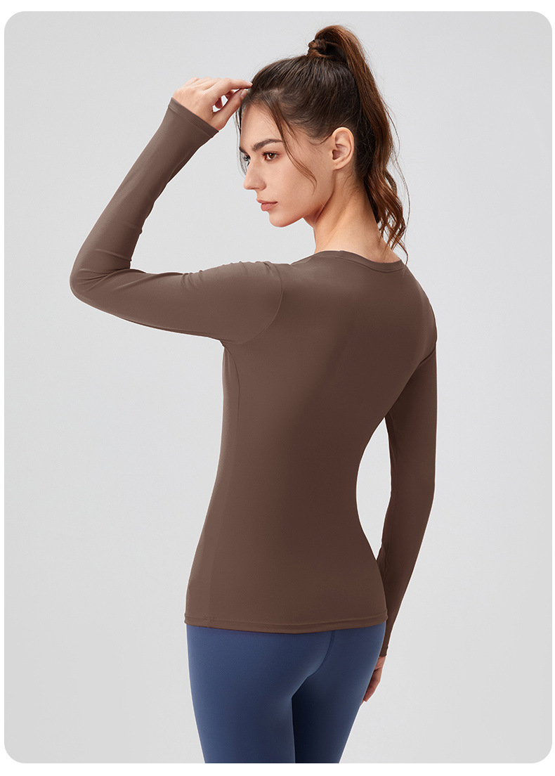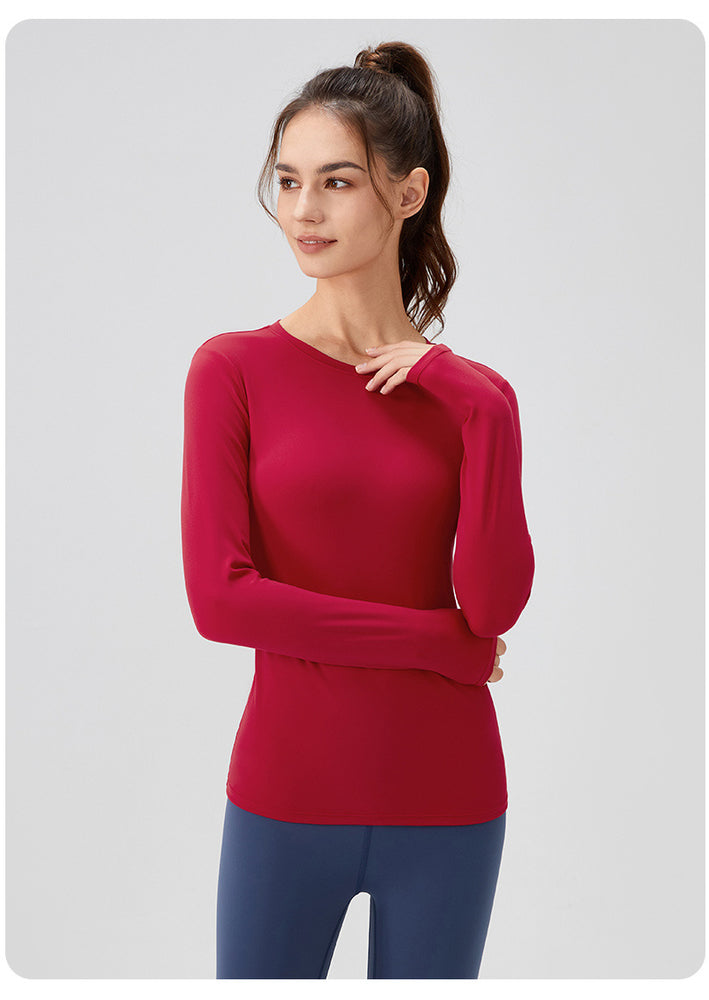Autumn Winter Yoga Workout Clothes Women's Skinny Slimming Sports Long Sleeve Nude Feel High Elastic Running Yoga Long Sleeve T shirt