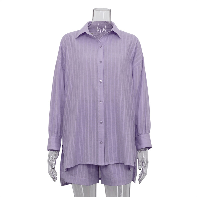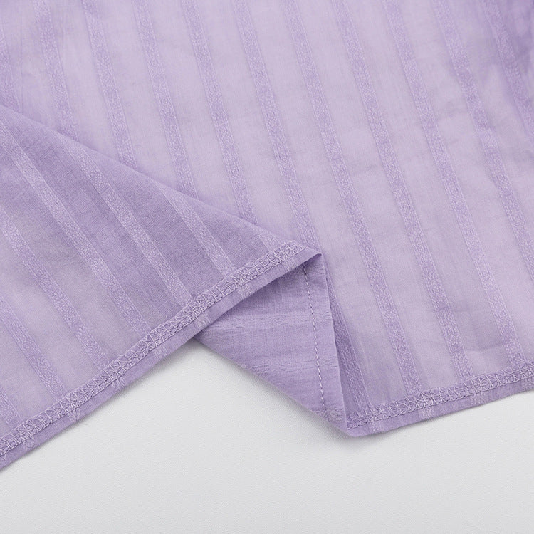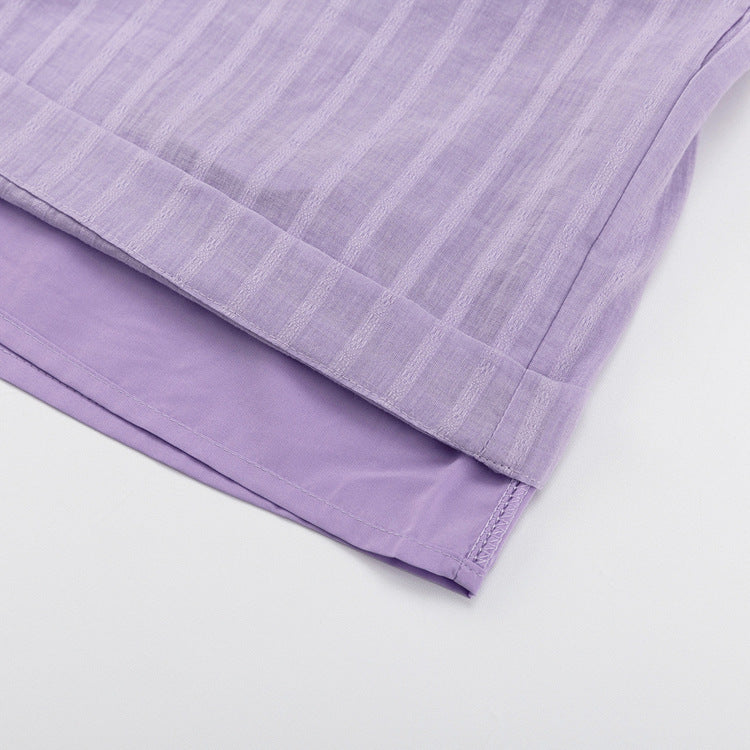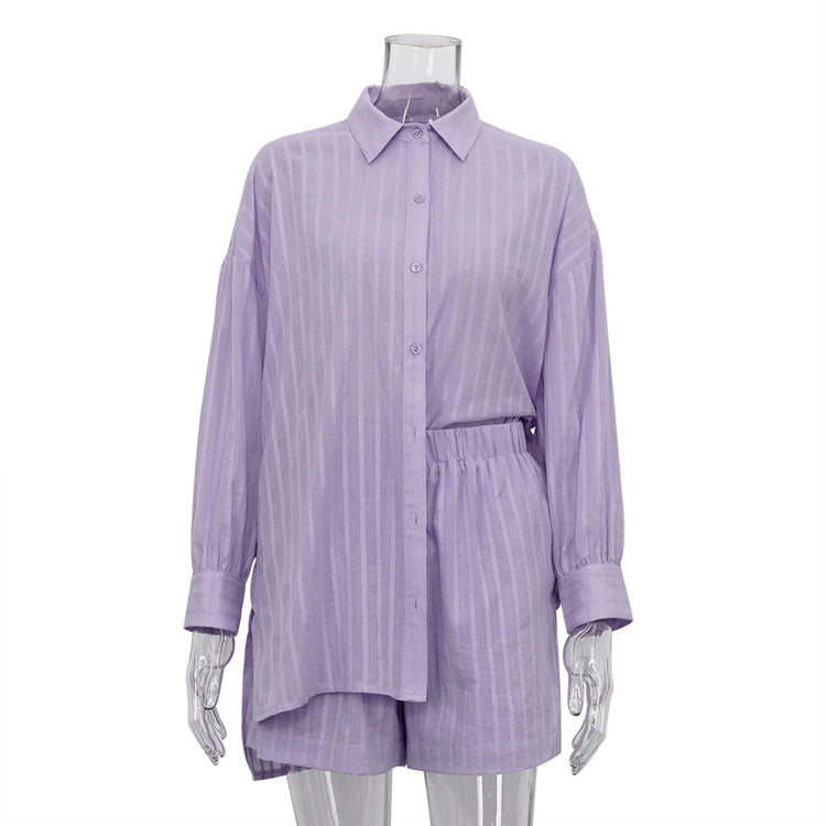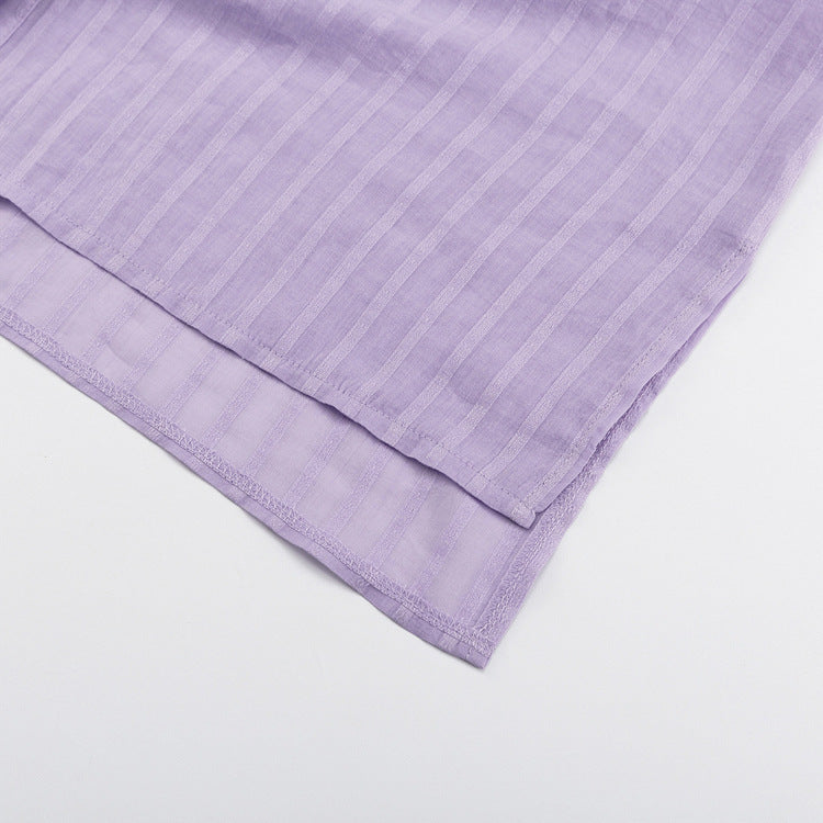 French Hot Summer Women Striped Puff Sleeve Fashion Tops Loose High Waist Shorts Design Casual Suit