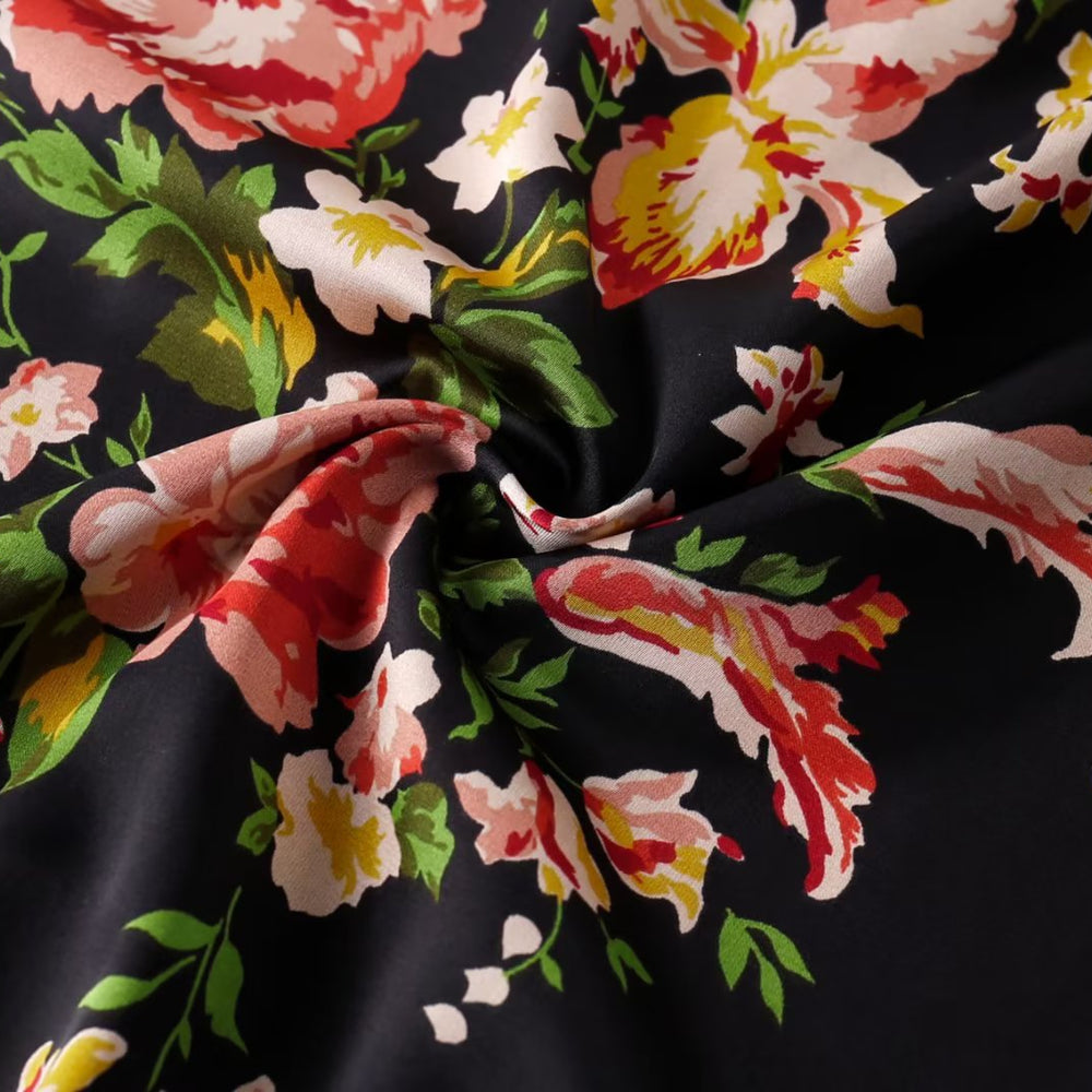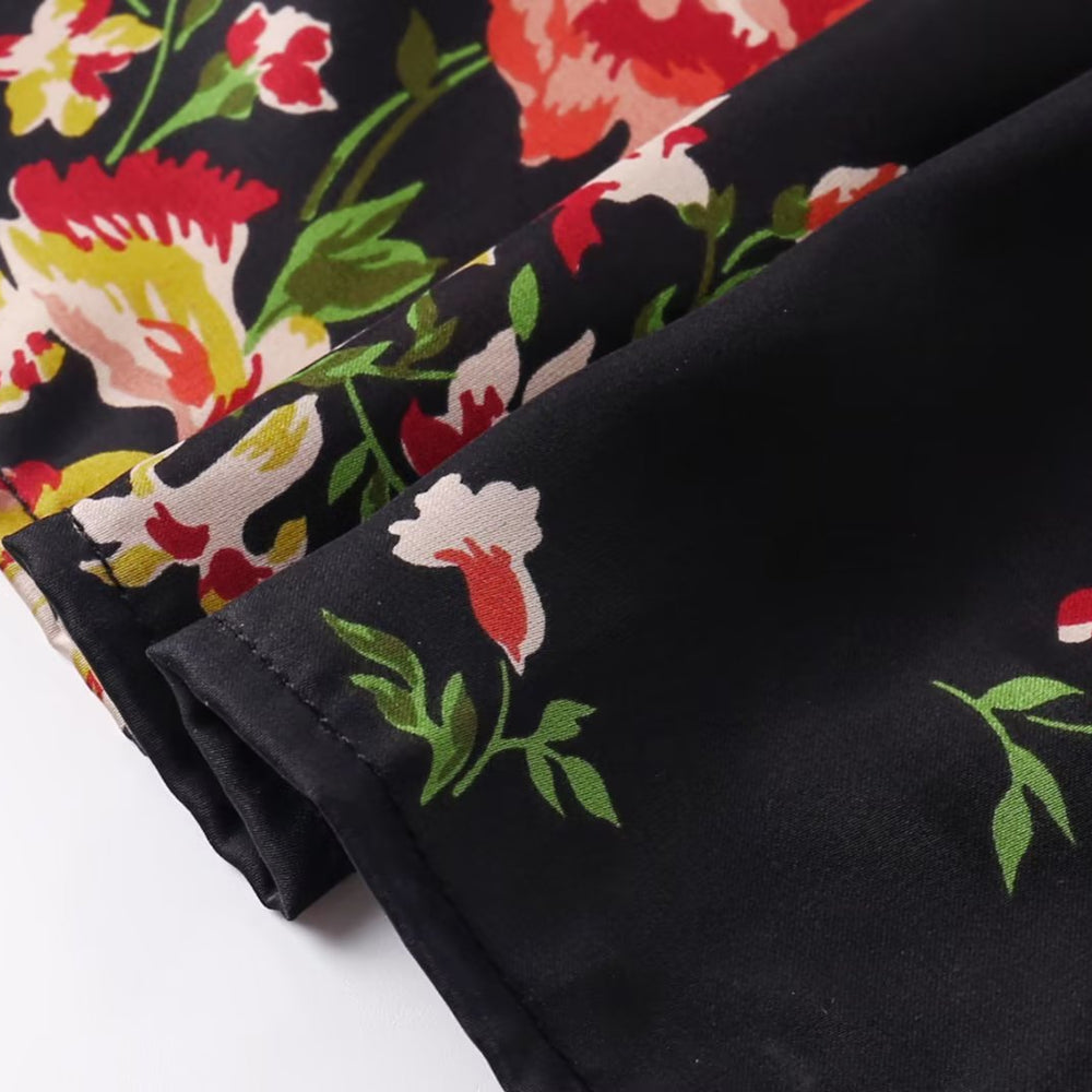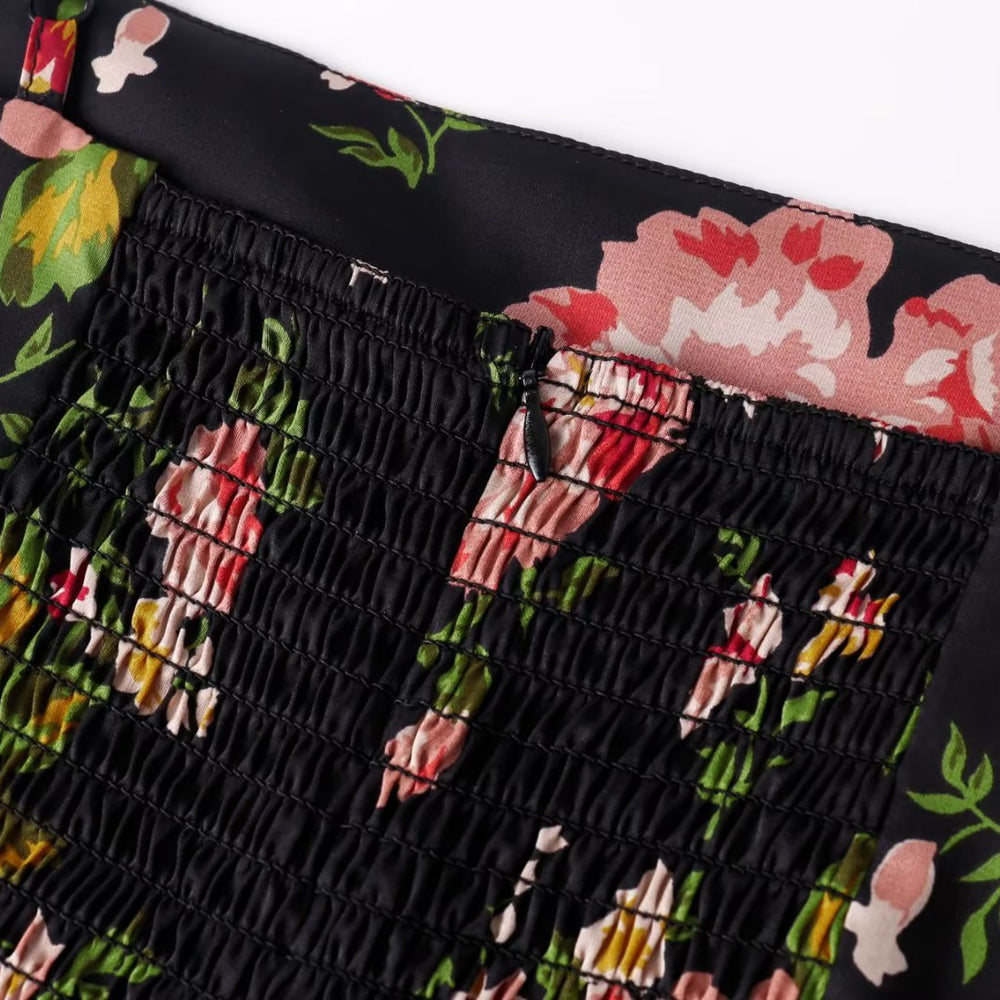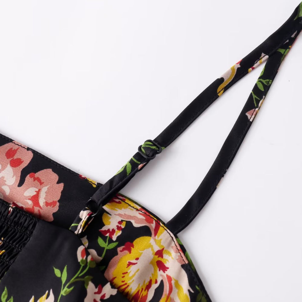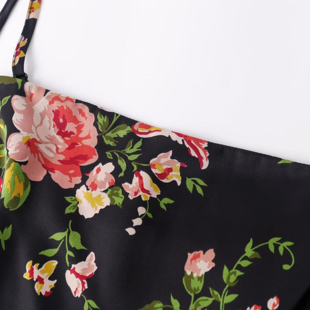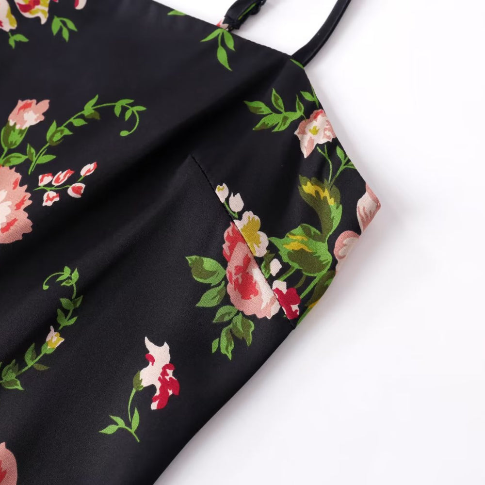 French Vintage Floral Print Floral Strap Dress Tight Waist Slimming Close Fitting Maxi Dress Back Split