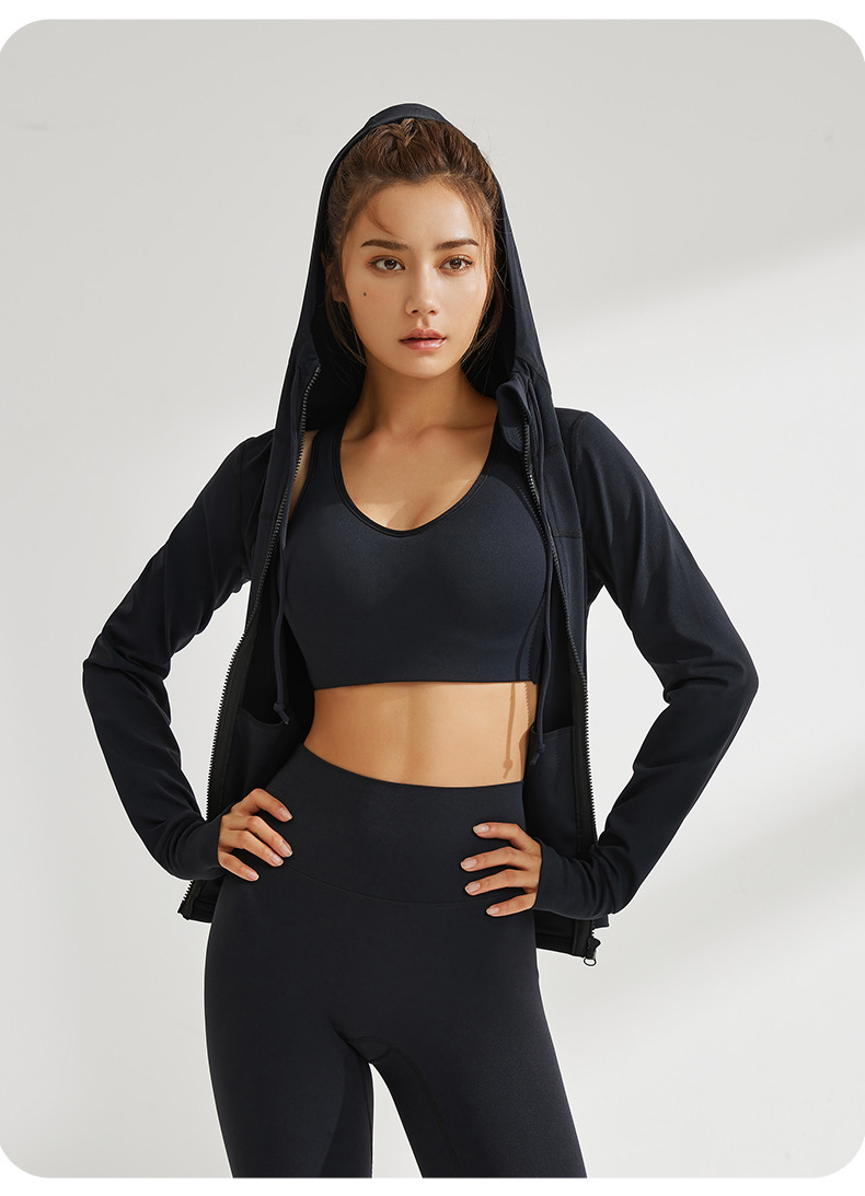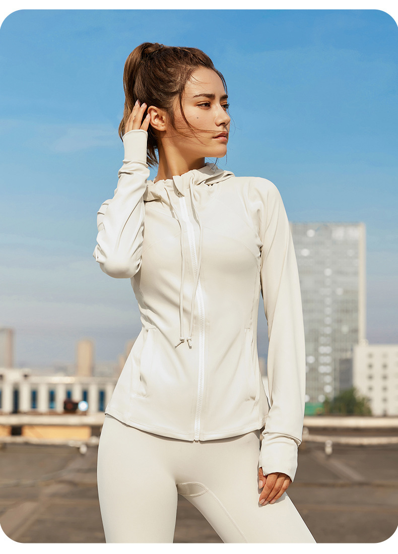 Nude Feel Yoga Clothes Women Casual Jacket Long Sleeved Zipper Hooded Running Skin Friendly Sports Fitness Top
