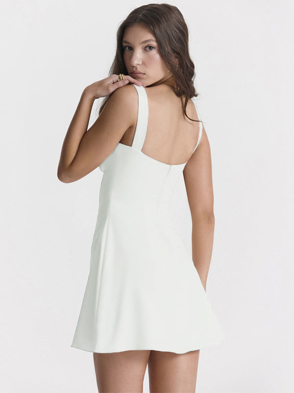 Sexy Spice Girls Sling Dress Satin Hollow Backless Short Skirt French Dress