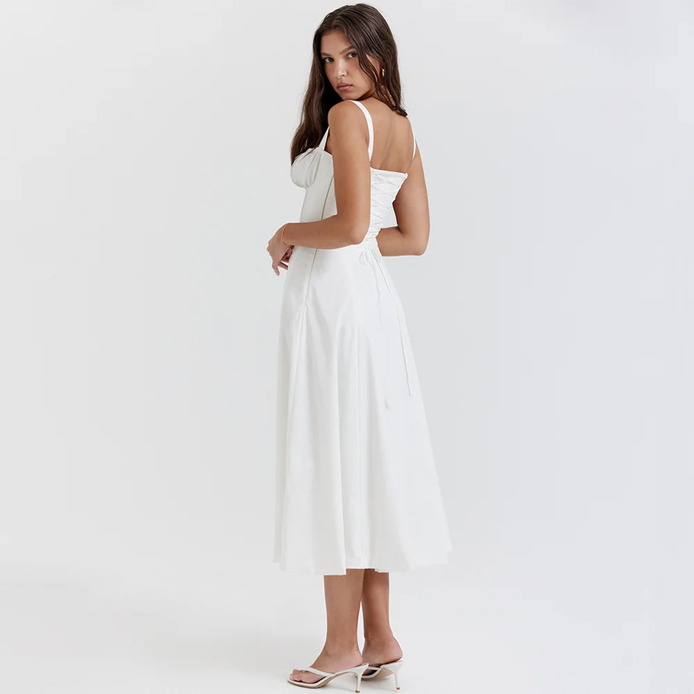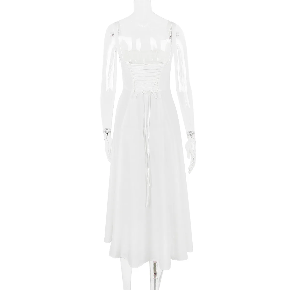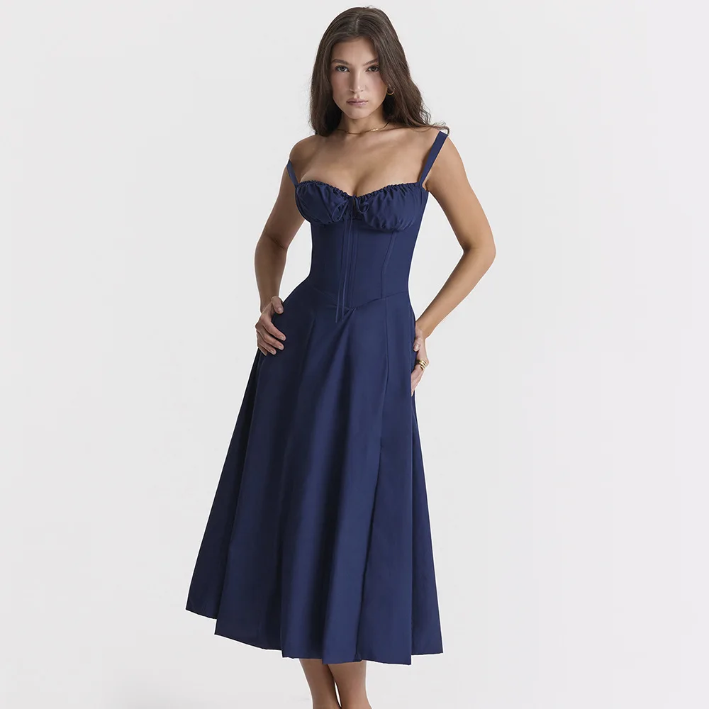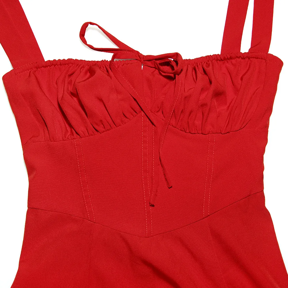 Sladuo Women's Spaghetti Strap Sleeveless High Waist Ruffle A Line Pockets Midi Dress