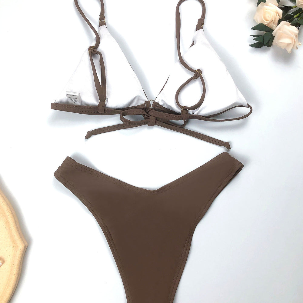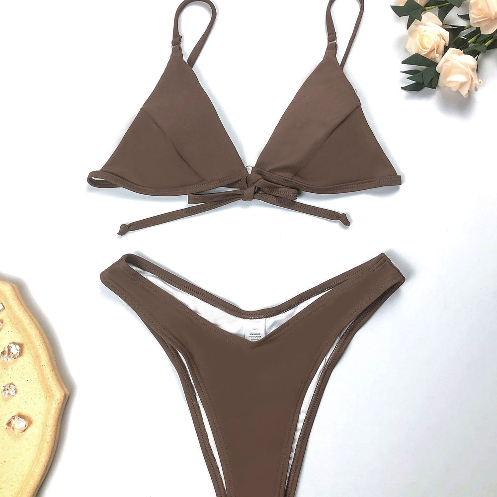 Split Swimsuit Solid Color Bikini Swimsuit Women High Waist Swimsuit Sexy Bikini