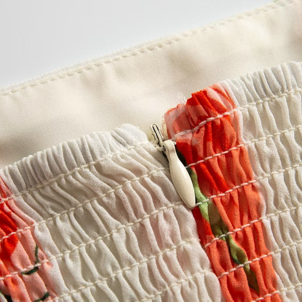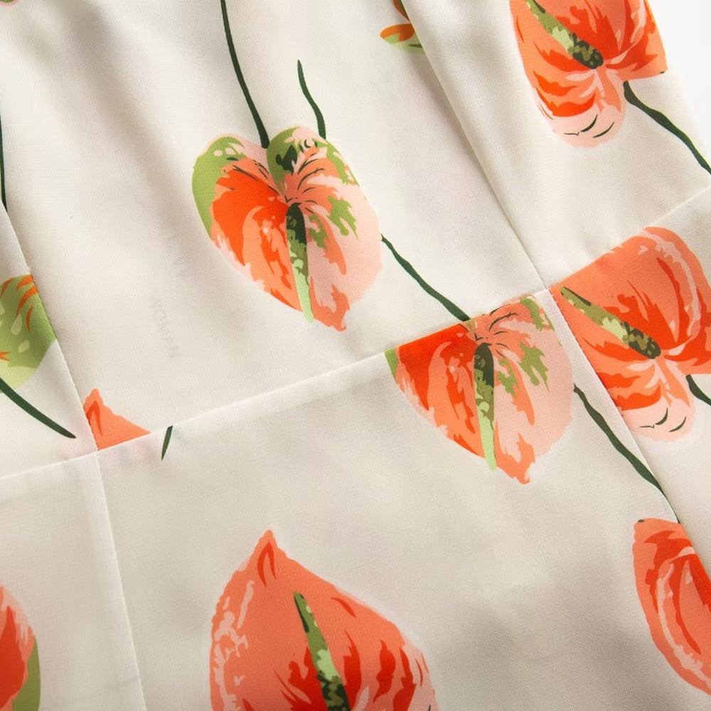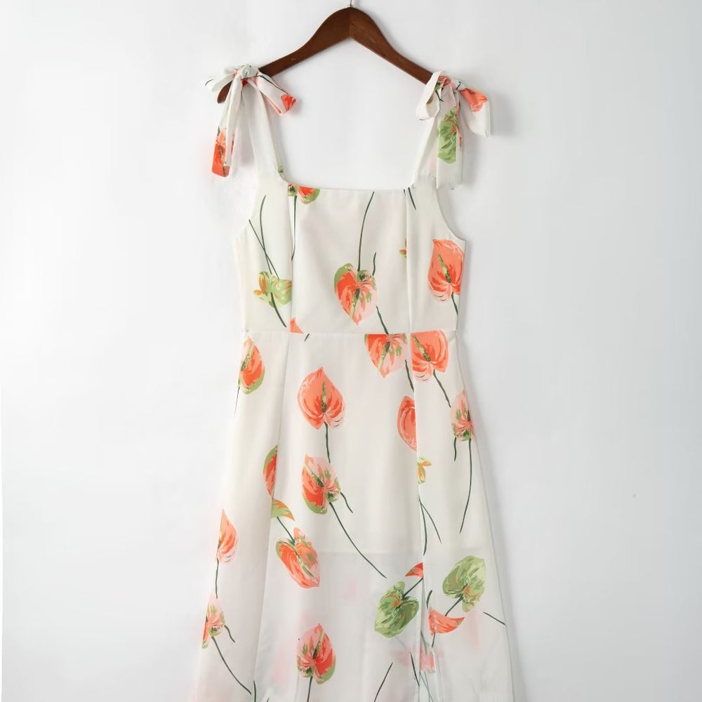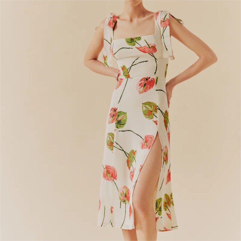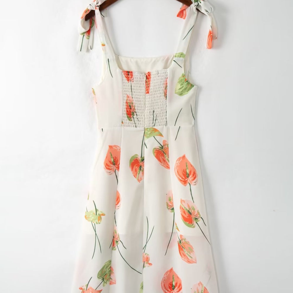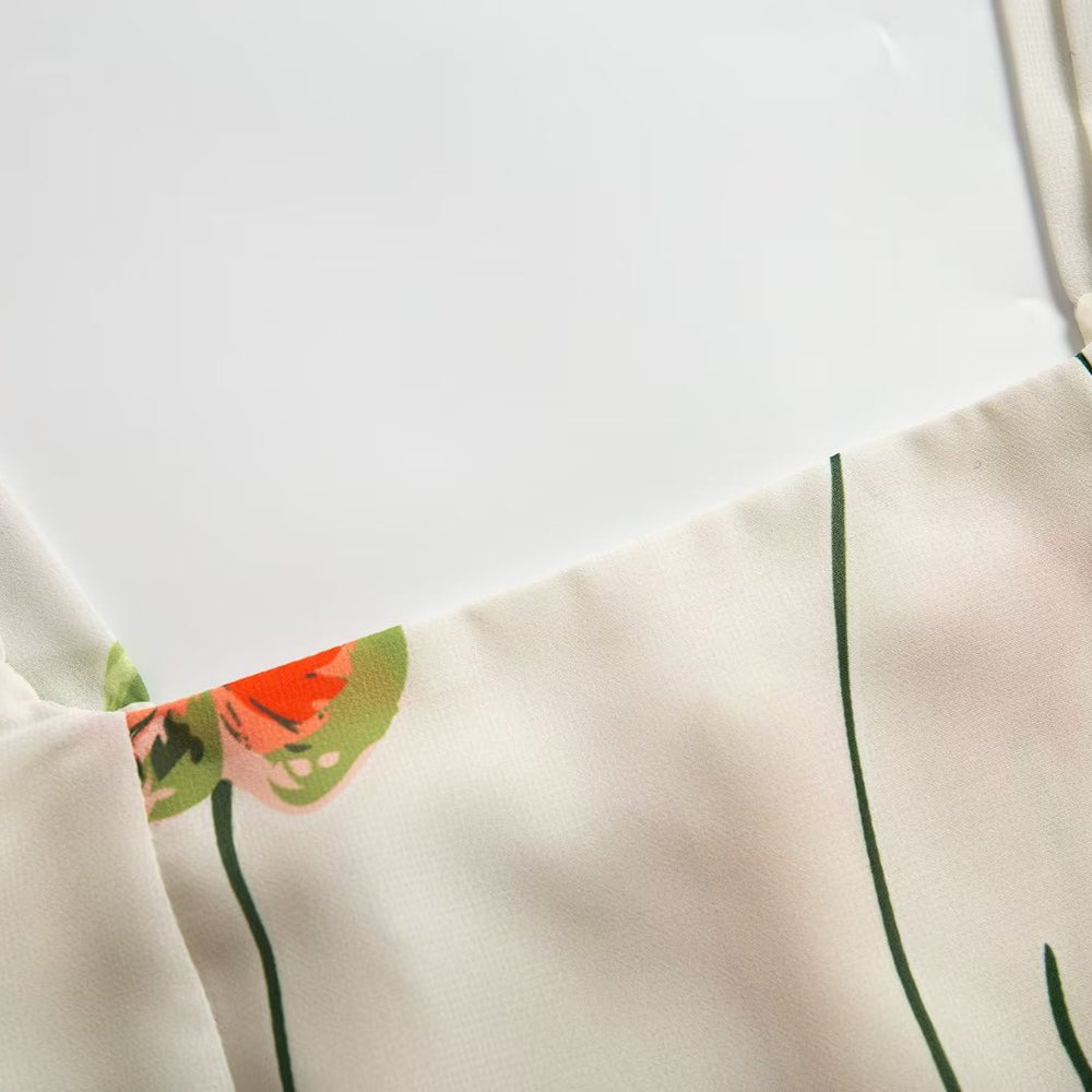 Summer French Elegant Pastoral Printed High Slit Strap Dress Women Tube Top Mid Length Dress