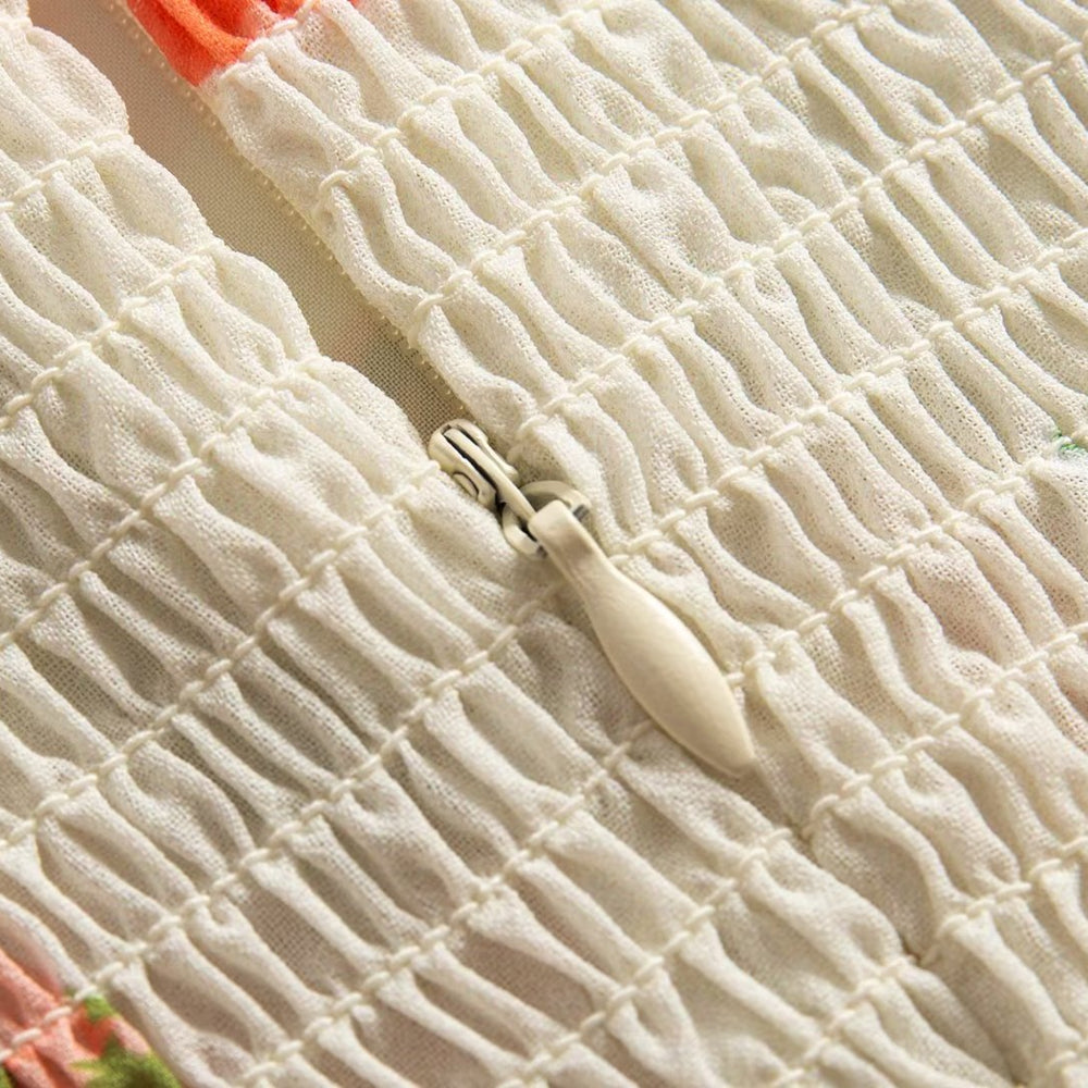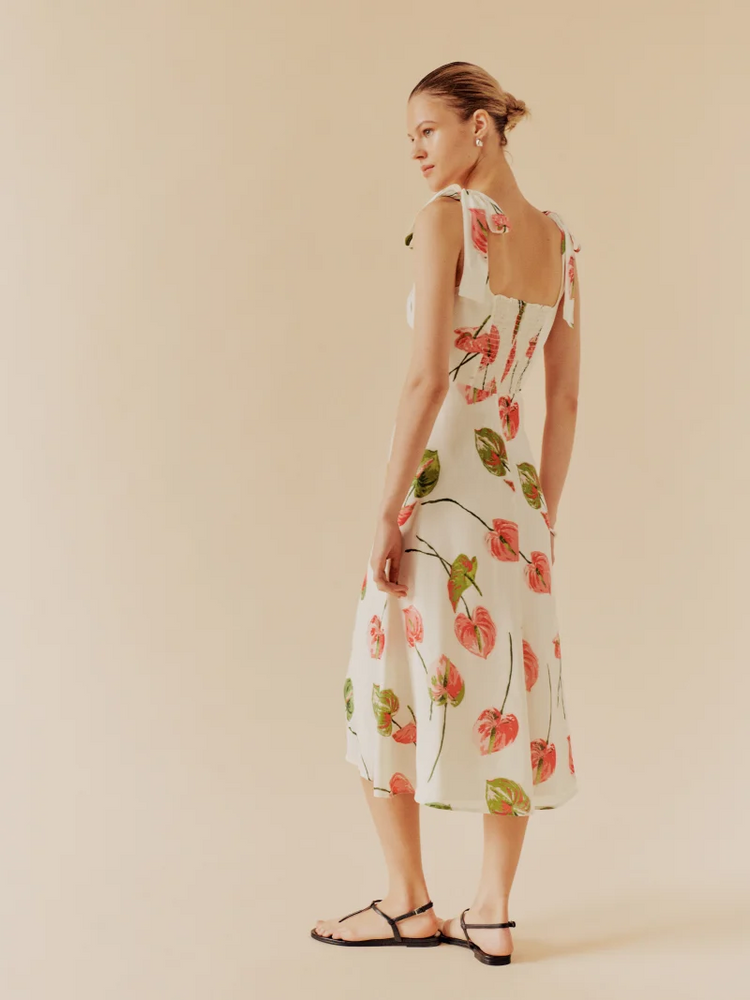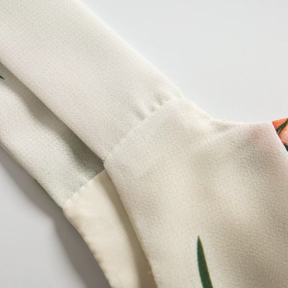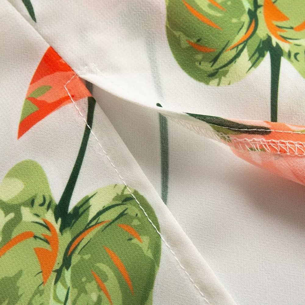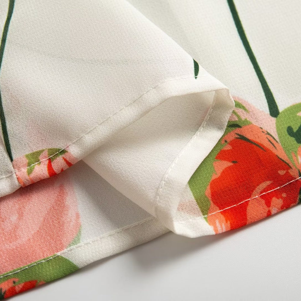Summer French Elegant Pastoral Printed High Slit Strap Dress Women Tube Top Mid Length Dress