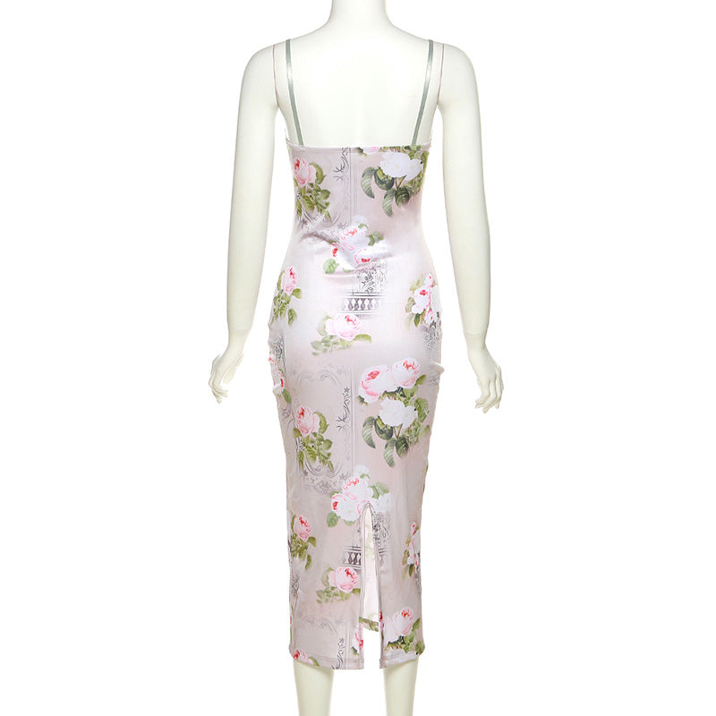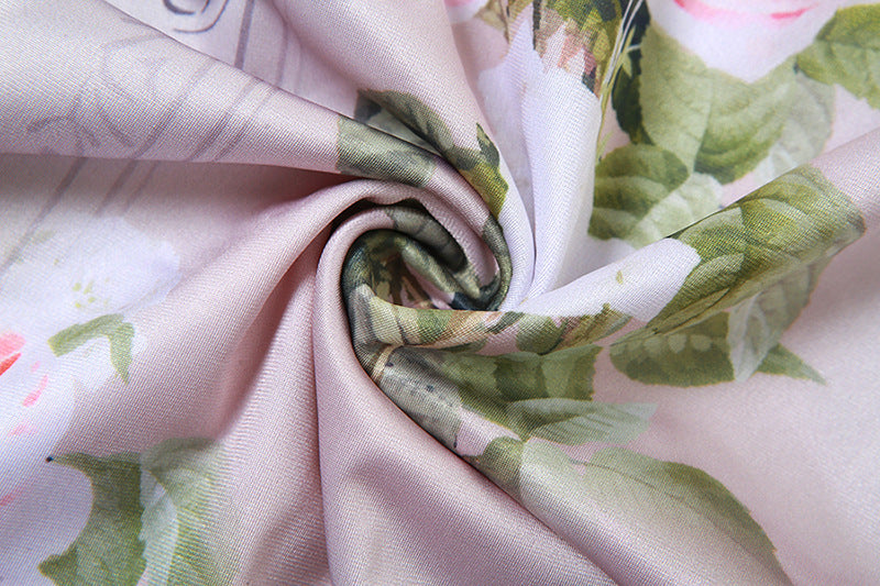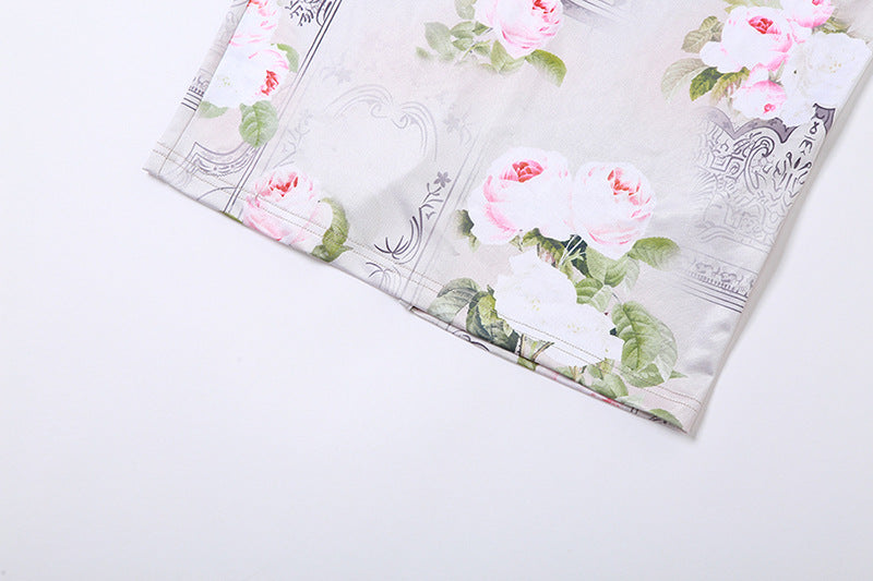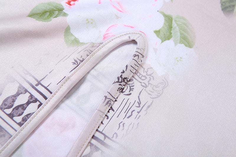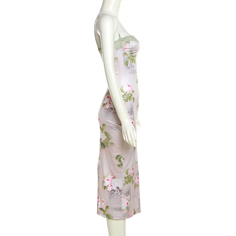 Summer Women Clothing Strap off-Neck Lace Stitching Printing Slim Dress for Women
