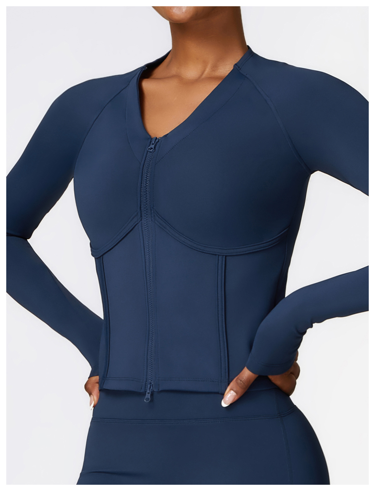 Winter Warm Fleece Lined Long Sleeved Yoga Jacket Outdoor Running Fitness Top Tight Sports Jacket