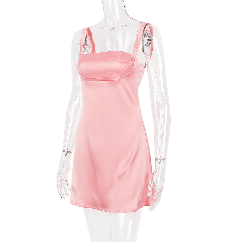 Women Clothing Drees Sexy Sexy Suspender Satin Hollow Out Cutout Backless Short French Dress Women