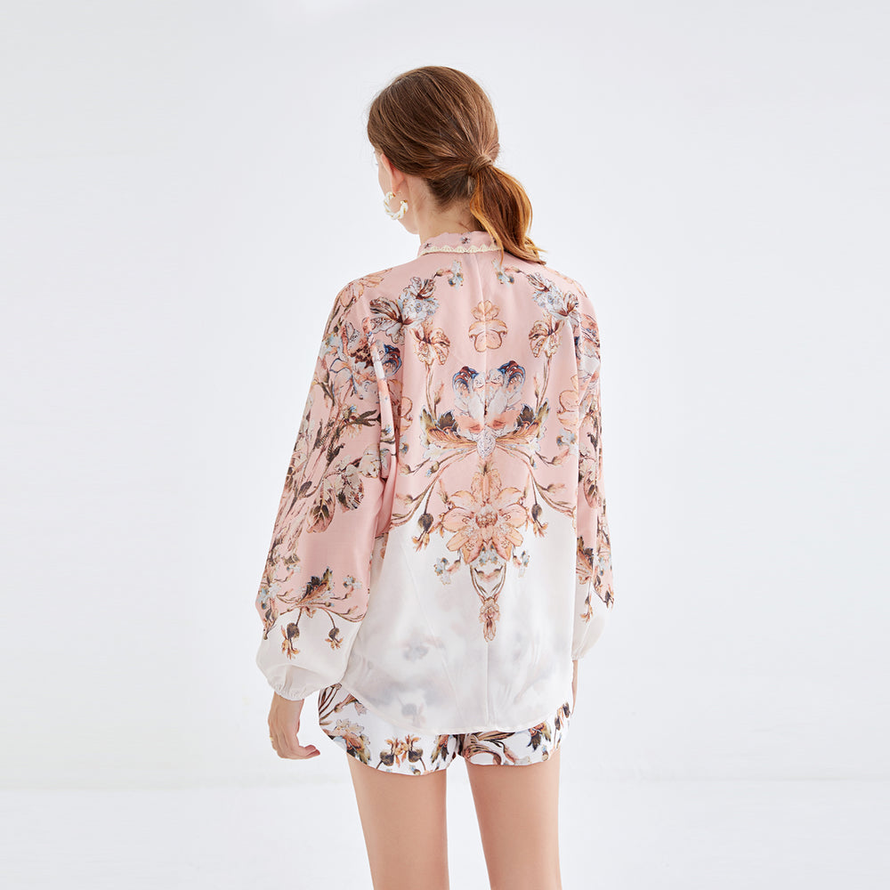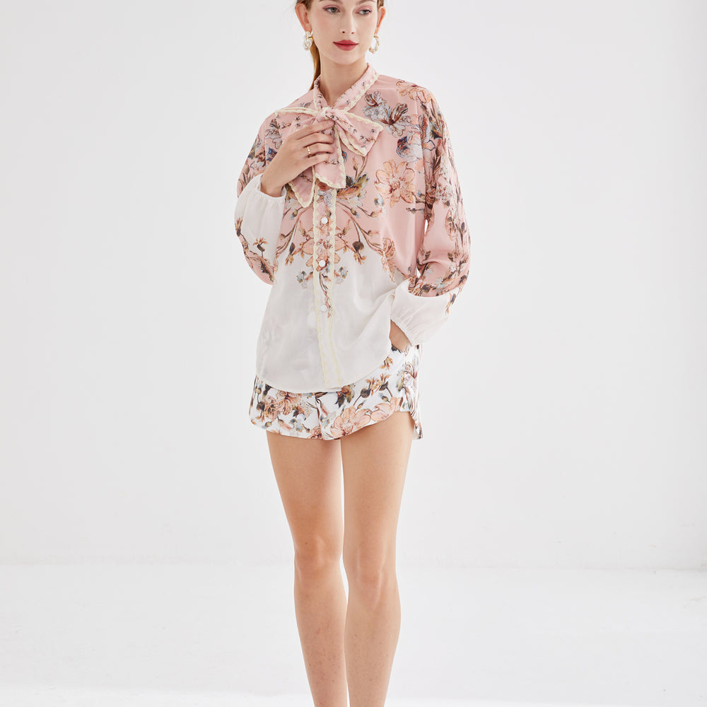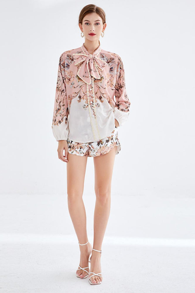 Women New Cotton Linen Lace up Stitching Lace Shirt Loose Single breasted Top Shorts Two piece Set