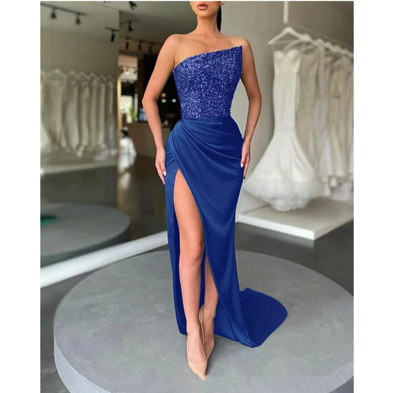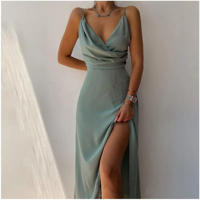 Women Sexy Corset Party Dress Elegant Strap V Neck High Waist Bandage Backless Sleeveless Slit Evening Cocktail Maxi Dress