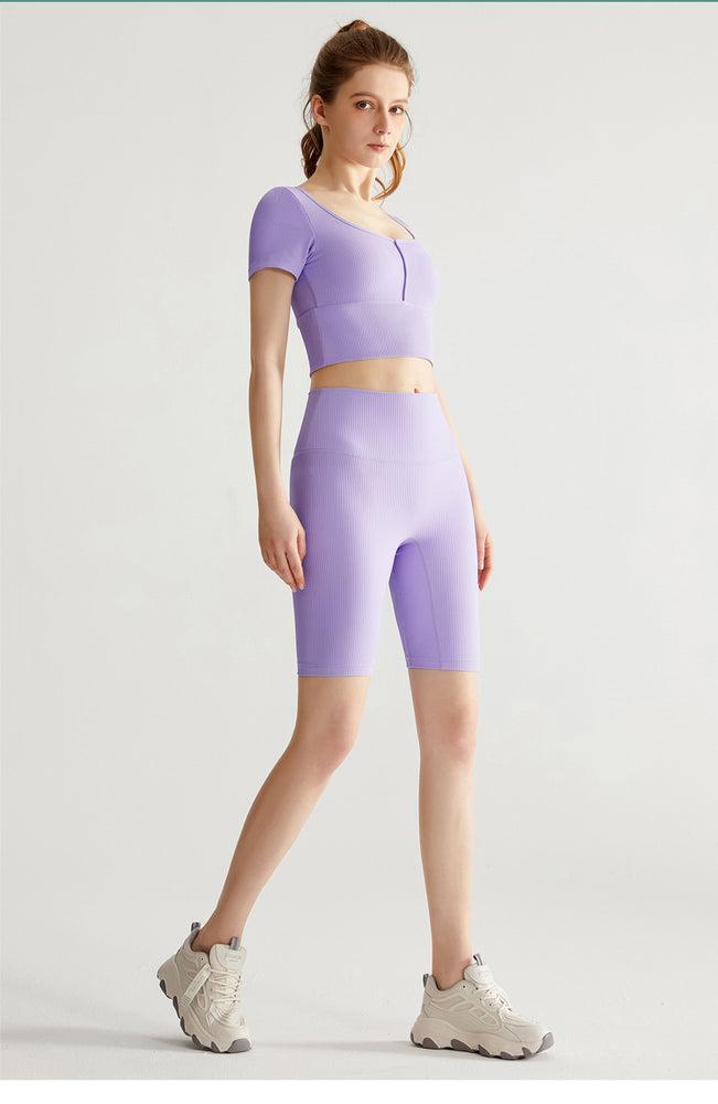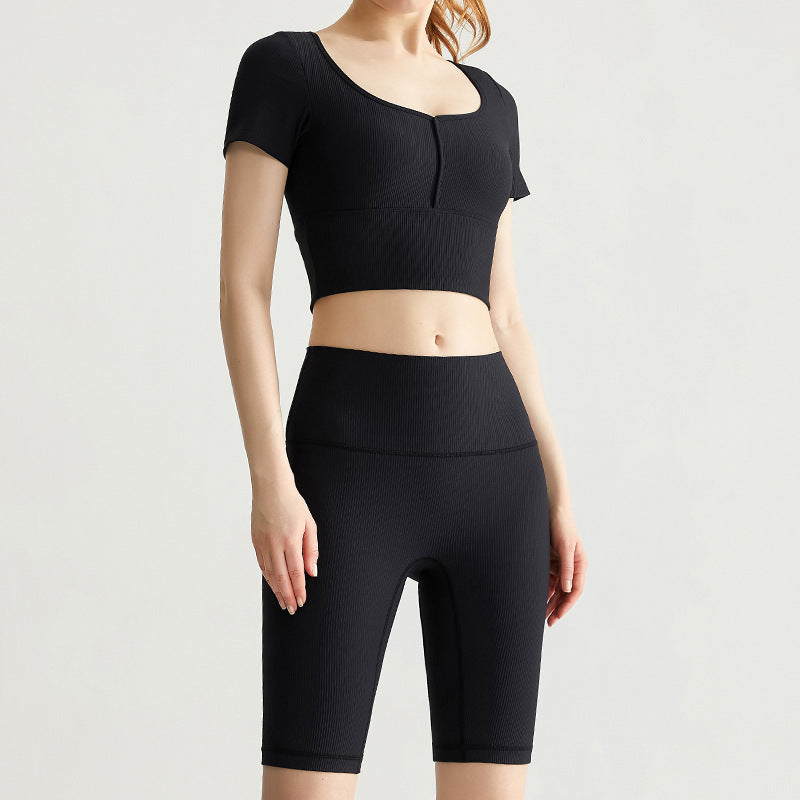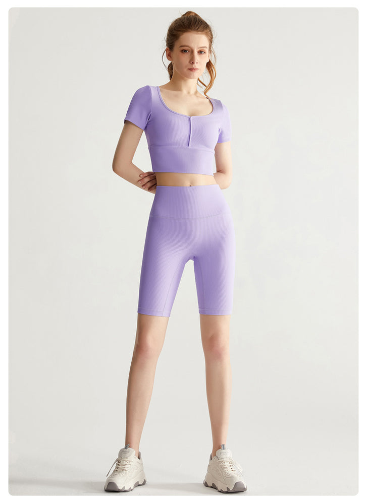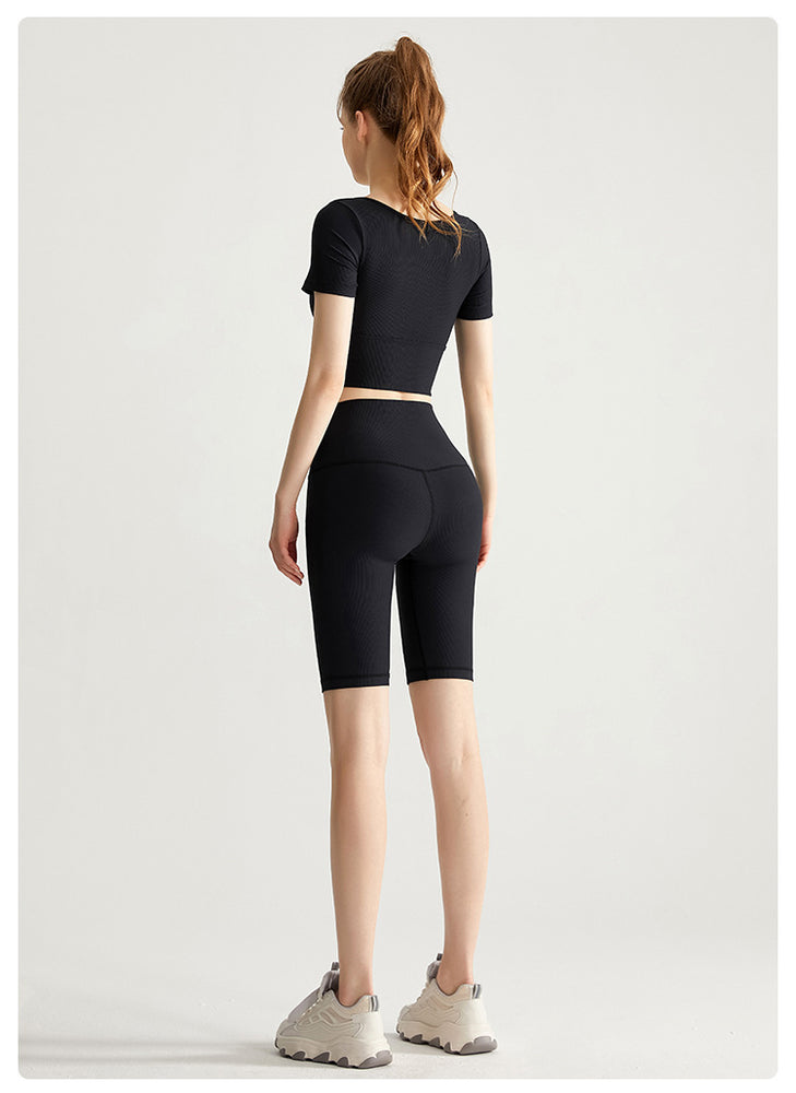 Yoga Clothes Shockproof Sports Short Sleeve High Waist Running Fitness Shorts Suit Women Summer